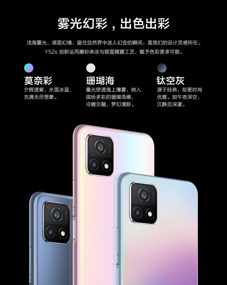 Vivo Y52s second-hand 5G mobile phone 5000mAh large battery 48 million images 90Hz 95 new second-hand mobile phone Monet Color 8G+128G Full Netcom/5G