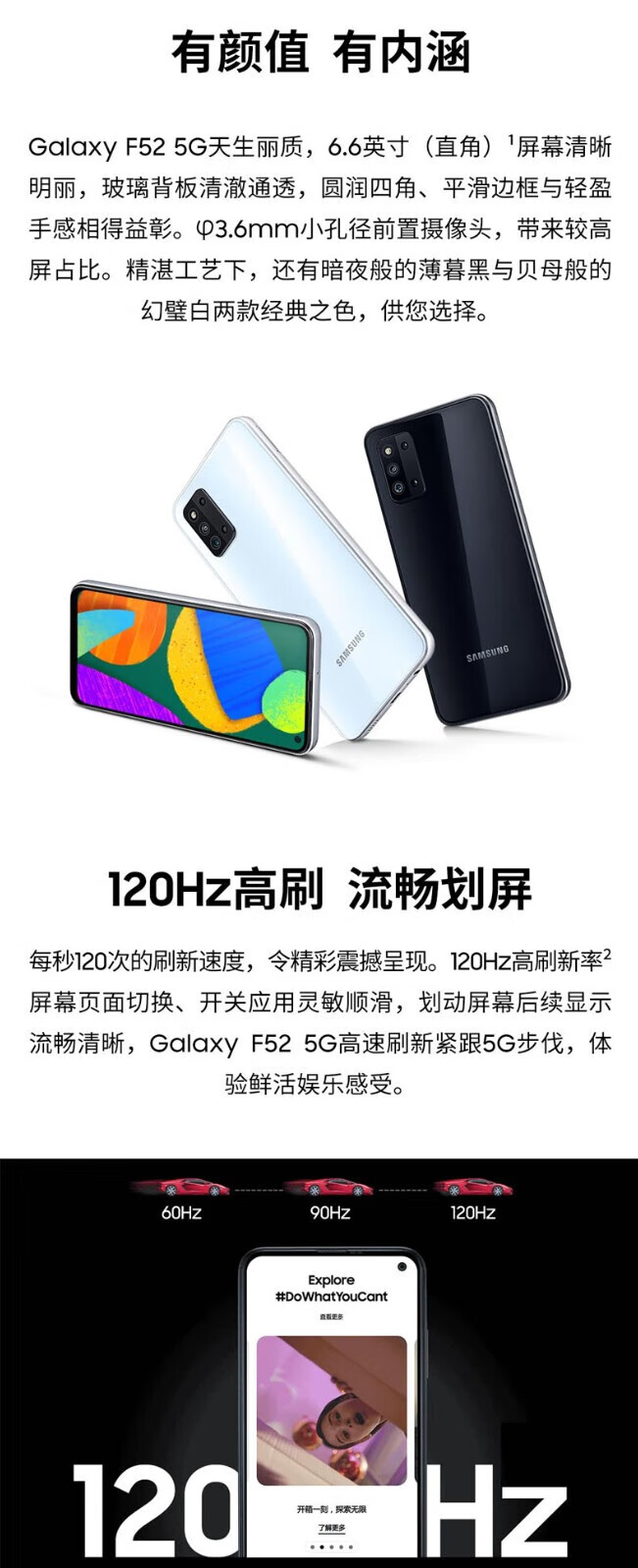 Samsung (SAMSUNG) Galaxy F52 Dual SIM Dual Mode Full Netcom 5G Smart 120Hz Full View Screen 64 Million Large Screen Game Smart Camera Phone Backup/Elderly Phone Direct Screen Dusk Black