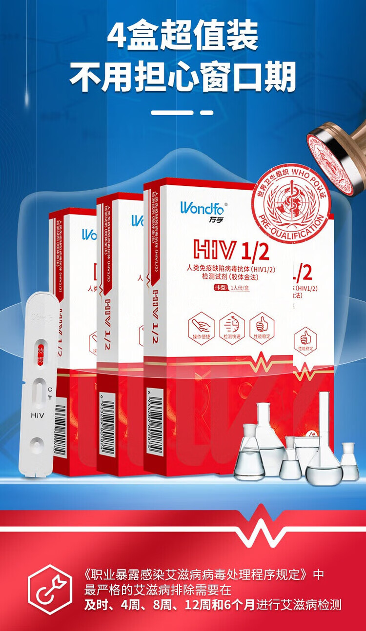 Wondfo AIDS test strips HIV test strips blood STD test non-fourth generation window period screening blood test 4 boxes value pack patented hot-selling four-item joint AIDS test card