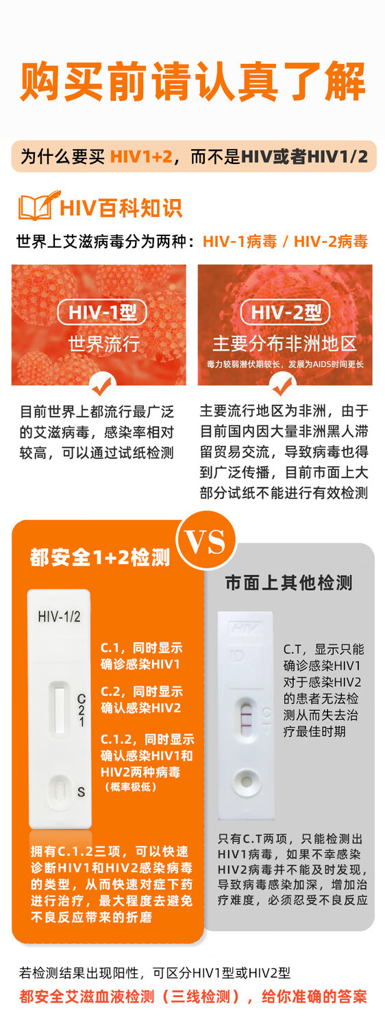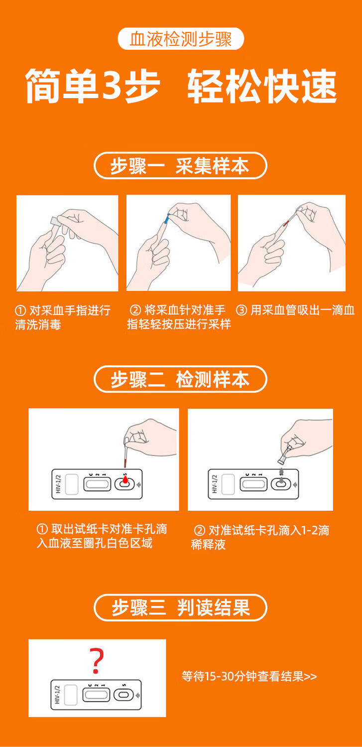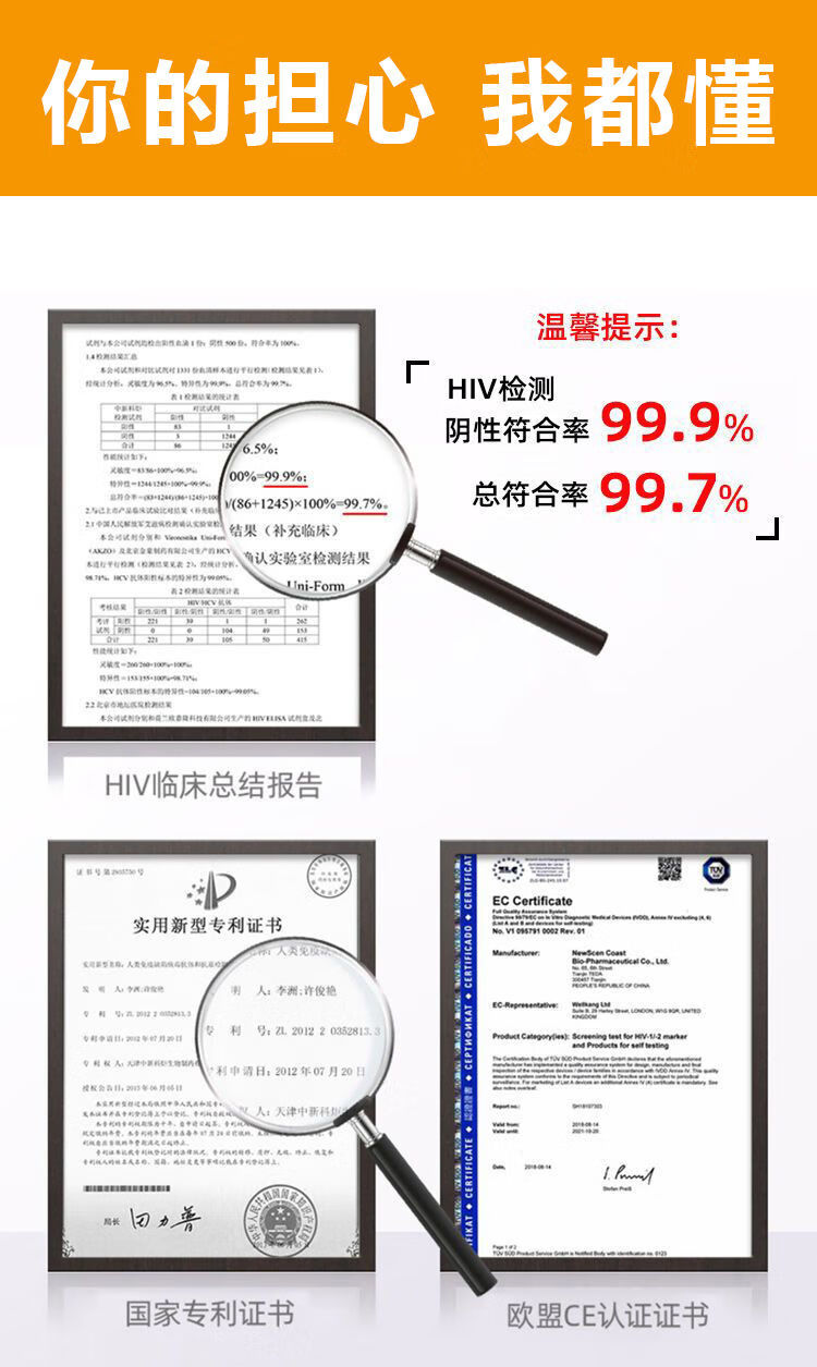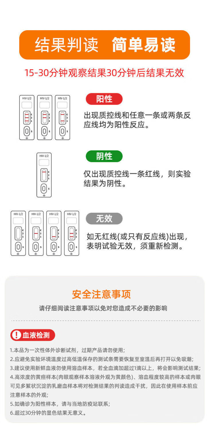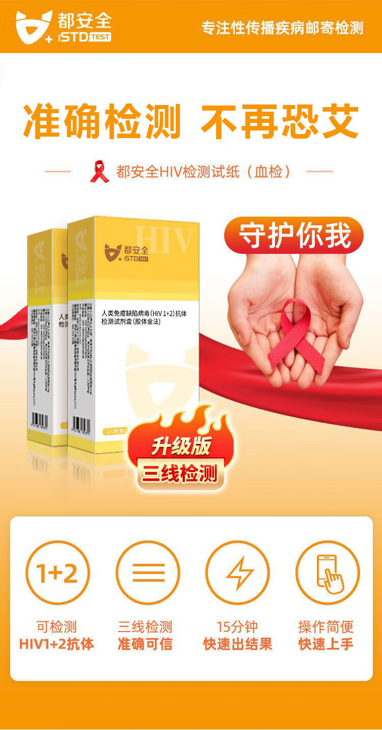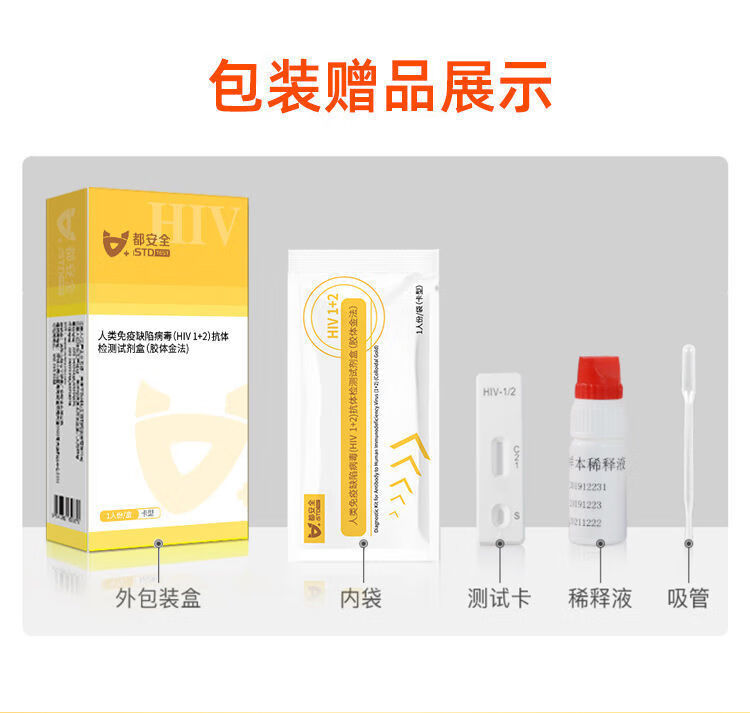 Rapid screening of infectious diseases, HIV home test, full blood test, small yellow box AIDS test, new third-line antibody test, rejecting AIDS fear, accurate test (free blood collection needle), 4 infectious diseases, re-test, 2 boxes