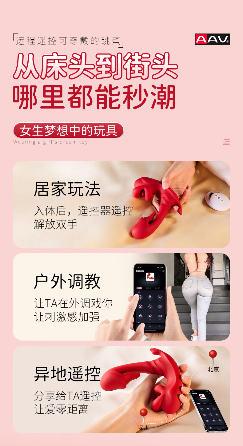 AAV remote control vibrator for outdoor wear, vibrator sex toy, female private instrument, adult girl masturbation toy, licking and biting Mittie, strong orgasm, remote control + backcourt stimulation + soft bass, wireless remote remote mobile phone control for couples, flirting physiology, decompression massager ricochet
