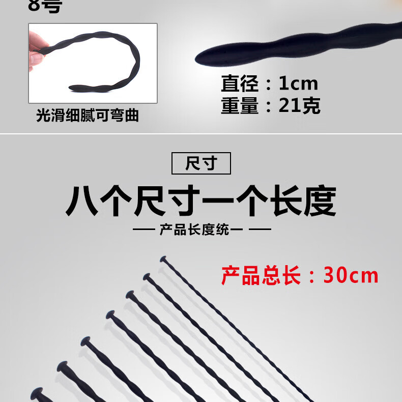 Silicone horse eye stick for novices, urethral plug, men's prostate massager, SM masturbation device expansion, novice horse eye stick, length 30cm, diameter 3mm