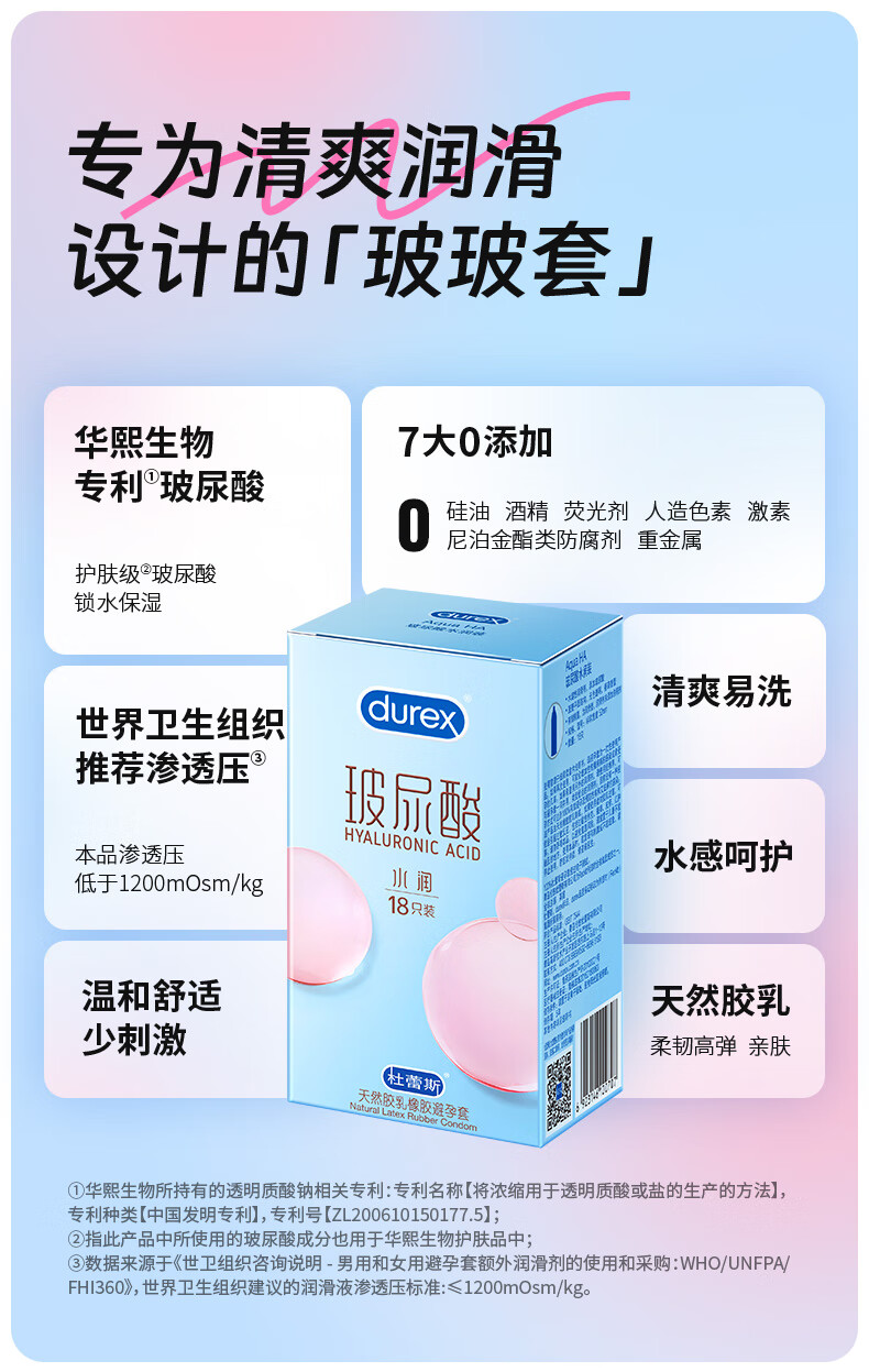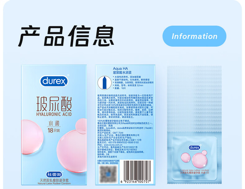 Durex Condom Hydrating Hyaluronic Acid 18 Condom Female Lubricated Adult Wearing Family Planning Supplies