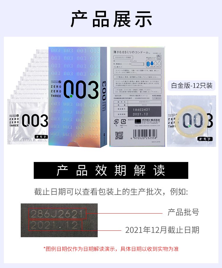 冈本003避孕套安全套白金贴合超薄12只 套套成人情趣计生用品日本进口