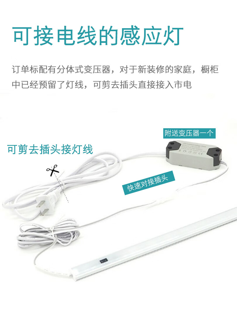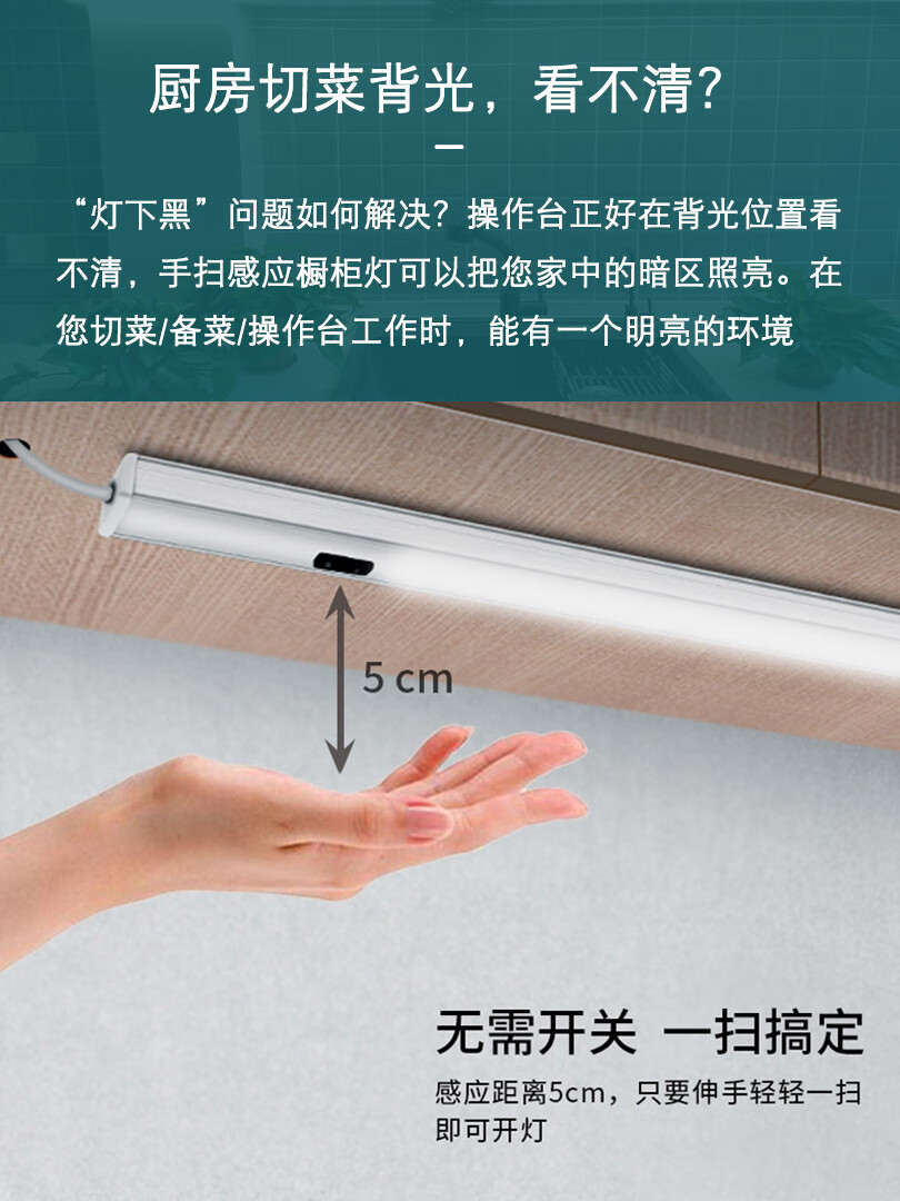 Lampe à capteur filaire pour armoire à chaussures, lampe à capteur à balayage manuel, lampe d'armoire de cuisine filaire longue avec câblage, lampe de fond d'armoire LED intelligente, armoire de cuisine ultra-mince enfichable, armoire murale de cuisine sous lampe à capteur de console 100 cm (lumière blanche positive)