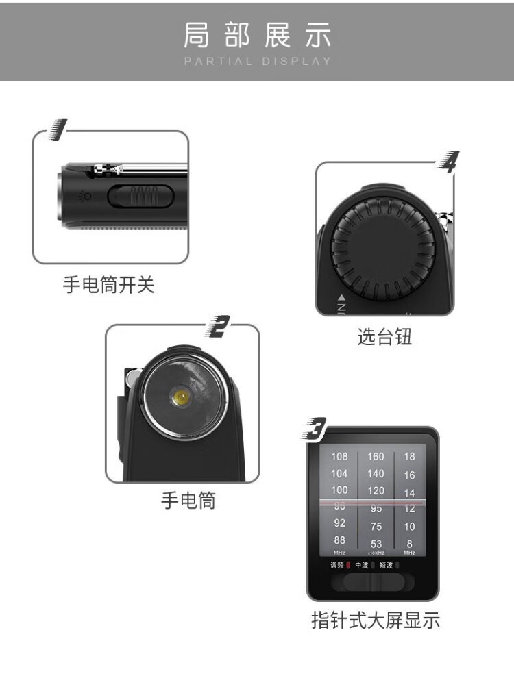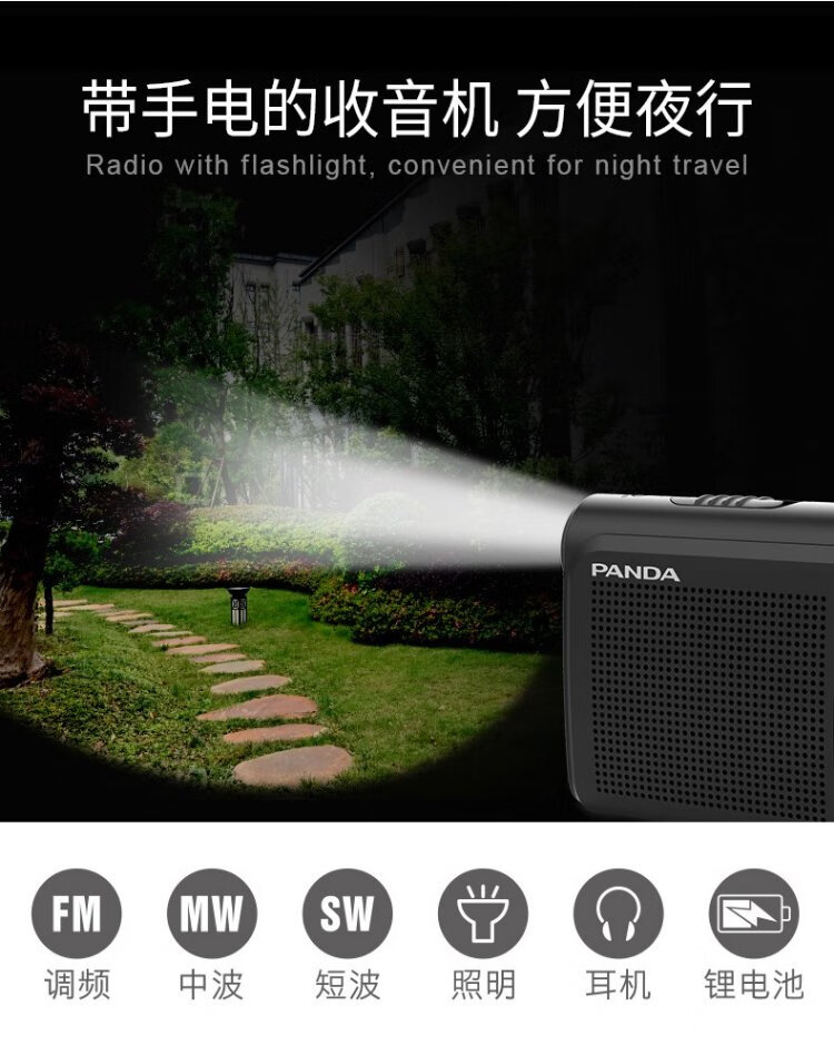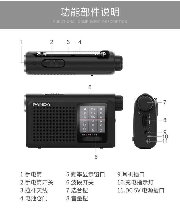 Panda (PANDA) 6241 radio portable full-band elderly semiconductor radio emergency multi-function outdoor home flashlight lighting car backup