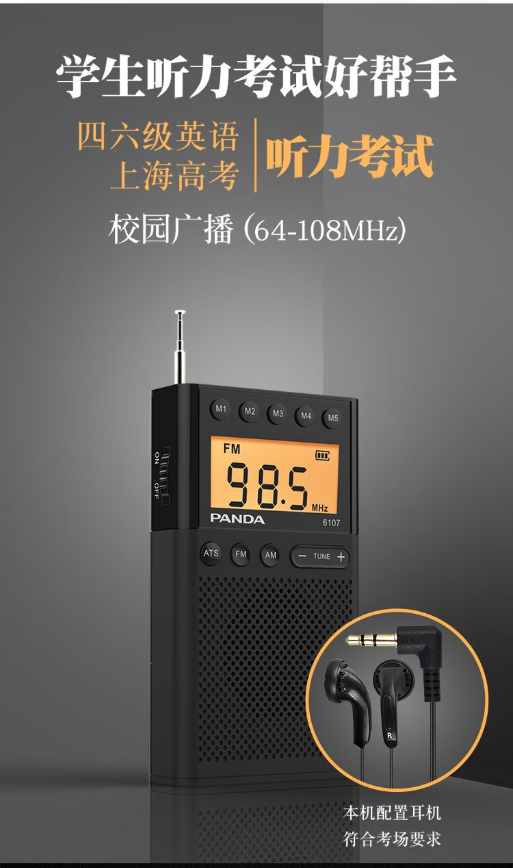 Panda (panda) 6107 radio mini pocket campus broadcast nationwide and Shanghai English level 4 and 6 college entrance examination for the elderly semiconductor gift