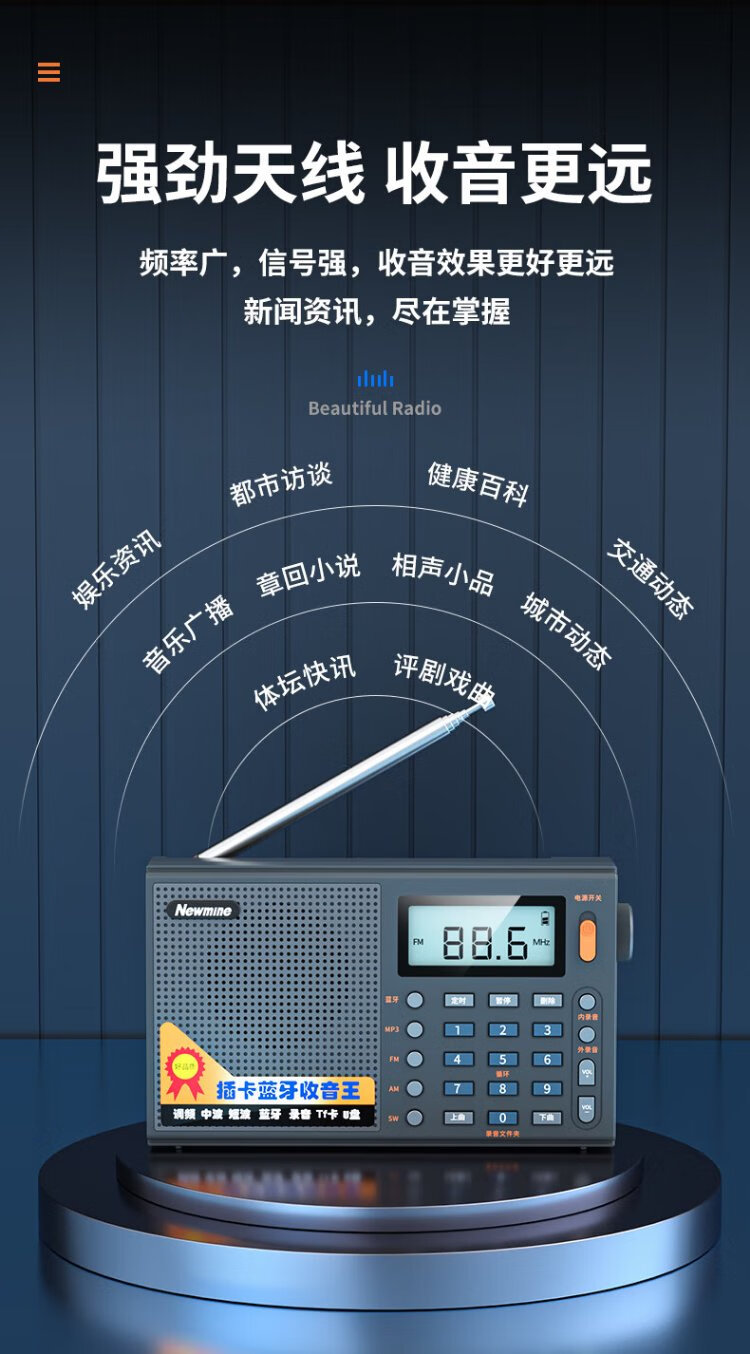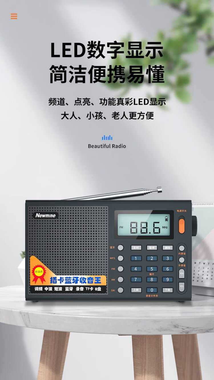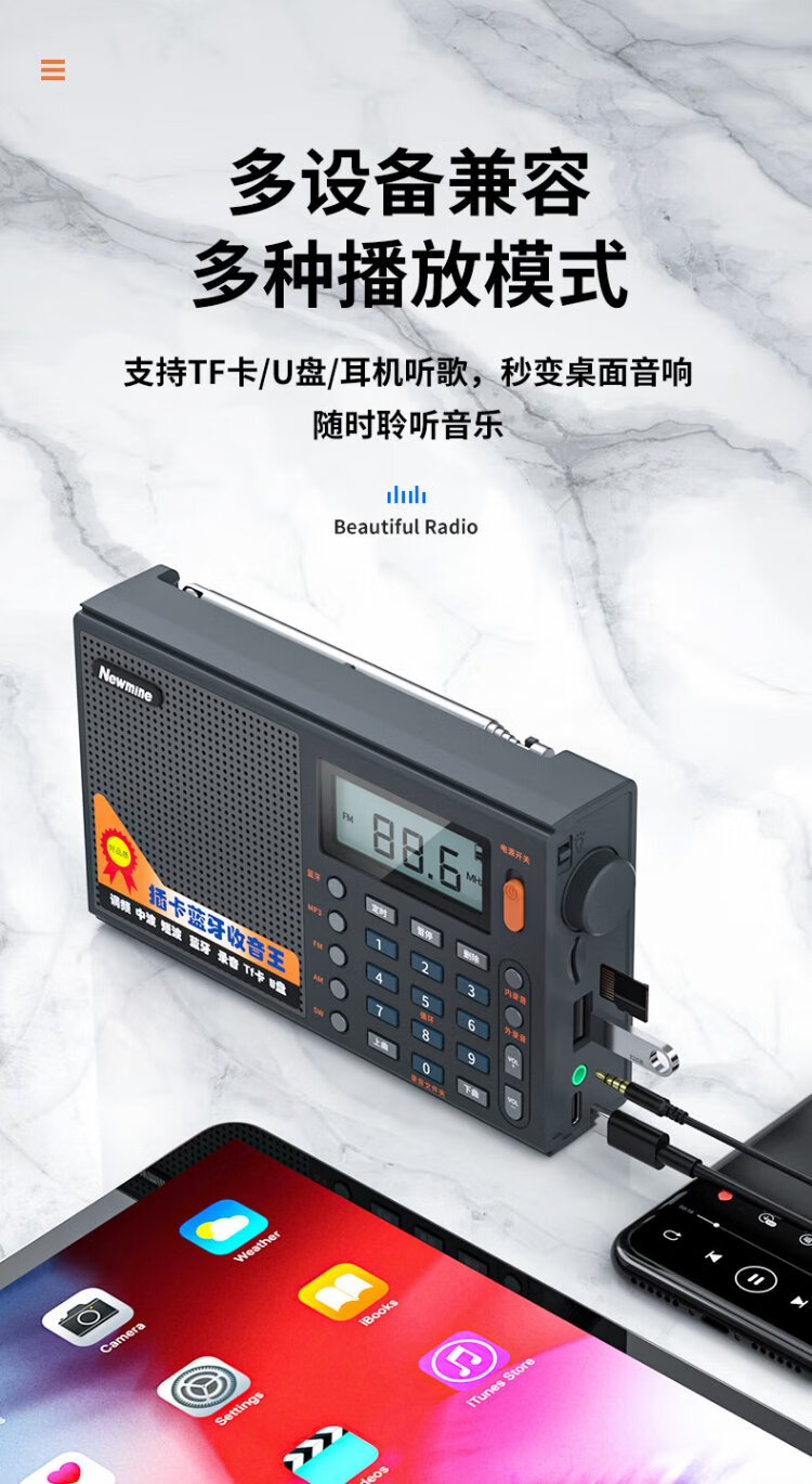 Newman T-6637 full-band radio for the elderly, digital mini card player, multi-functional portable semiconductor FM English level 4 and 6 radio and theater player