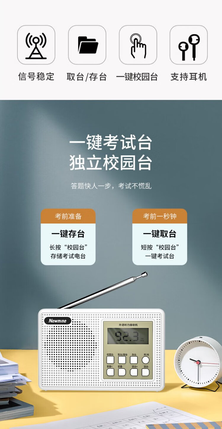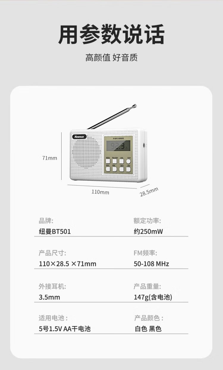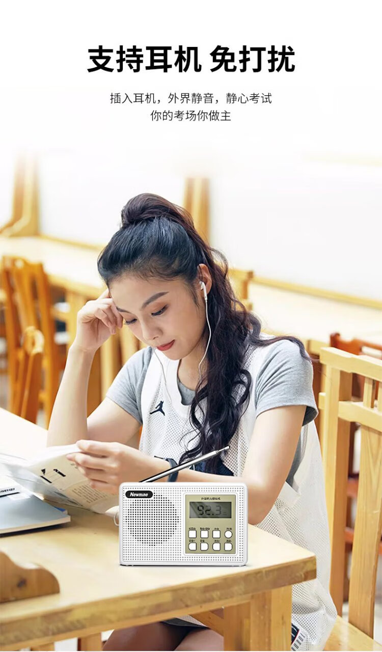 Newman BT501 Radio-College-Aufnahmeprüfung, Englisch-Hörniveau 4 und 6, Campus-Maschine, Player für ältere Menschen, tragbarer Vollband-FM-Walkman, weiß