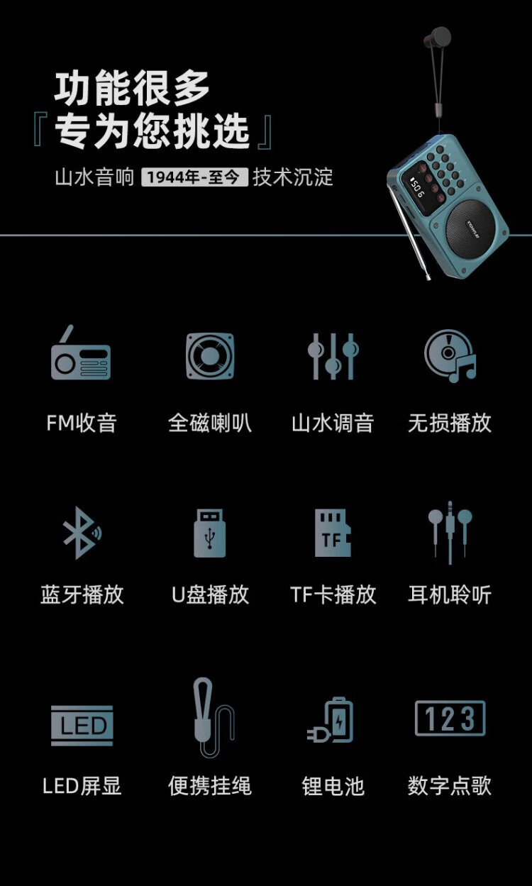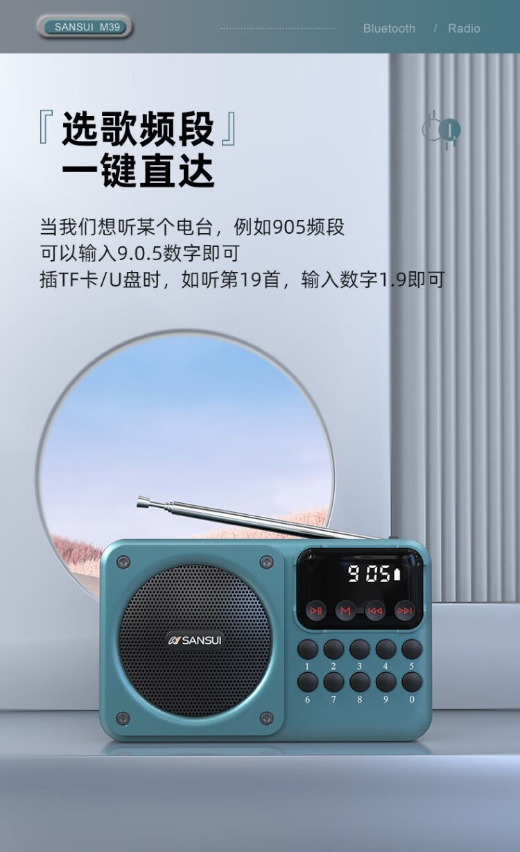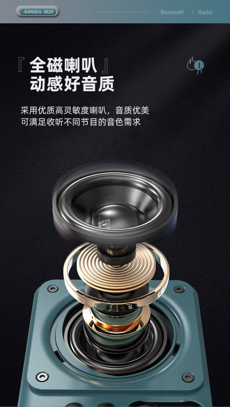 SANSUI M39 radio for the elderly and the elderly charging plug-in card mini speaker portable walkman FM radio audio Bluetooth speaker music player gray