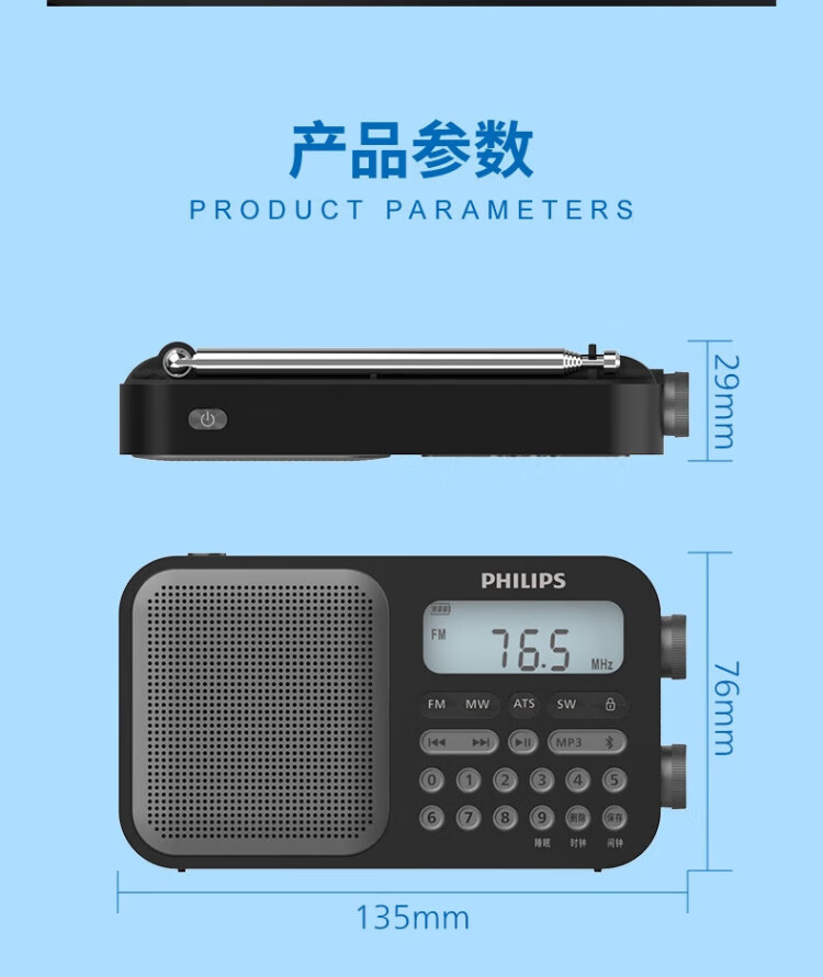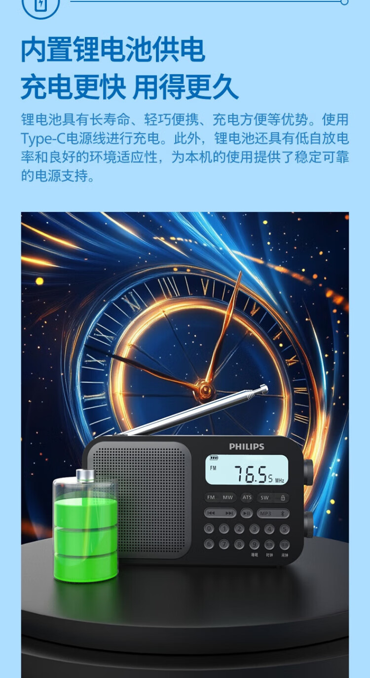 Philips (PHILIPS) TAR6109 full-band radio shortwave radio Bluetooth card elderly students English listening test portable multi-functional semiconductor speaker