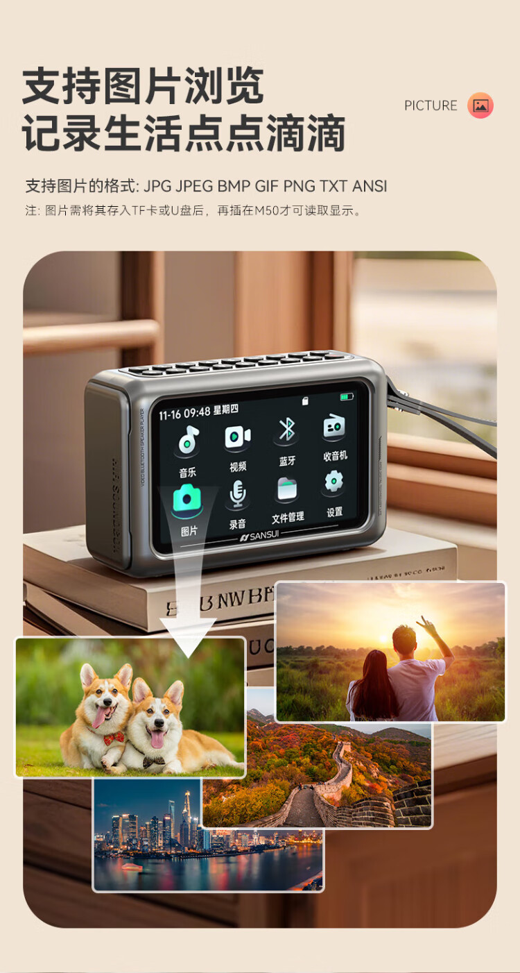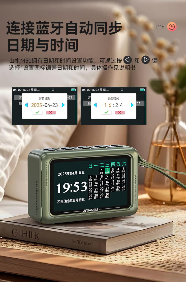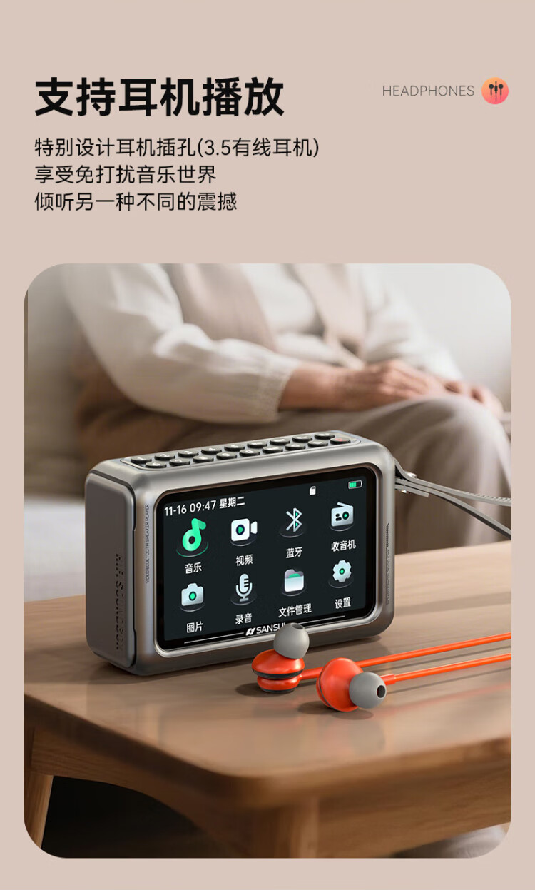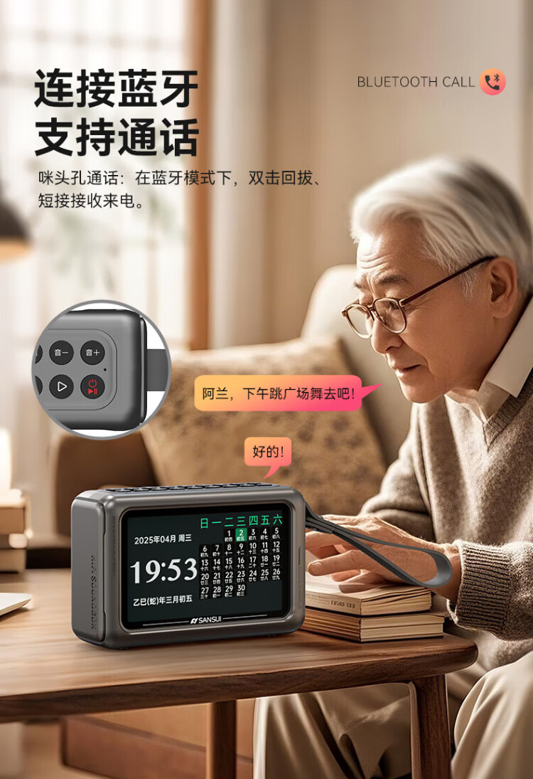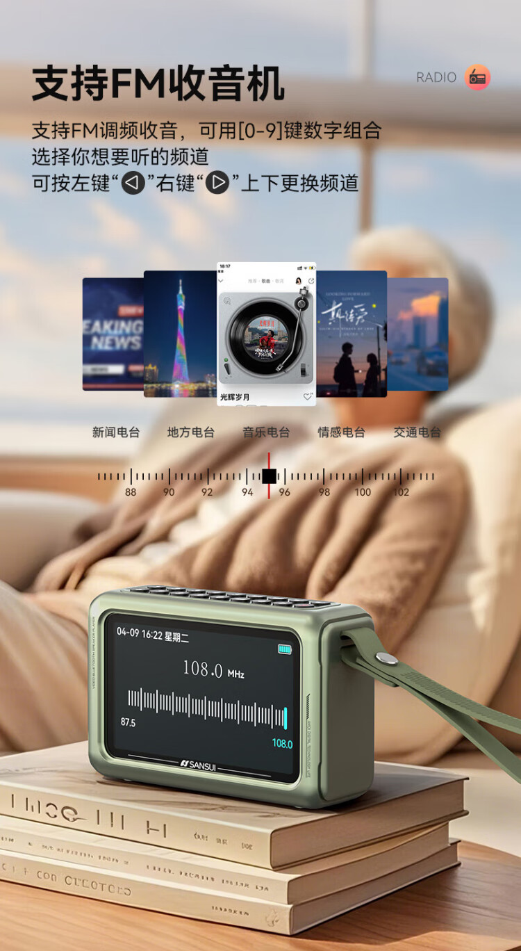 SANSUI M50 radio for the elderly, Walkman, Bluetooth speaker, opera player, portable mini multi-function player card, 2025 new radio and audio recorder for the elderly, green