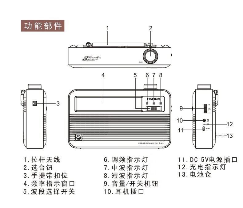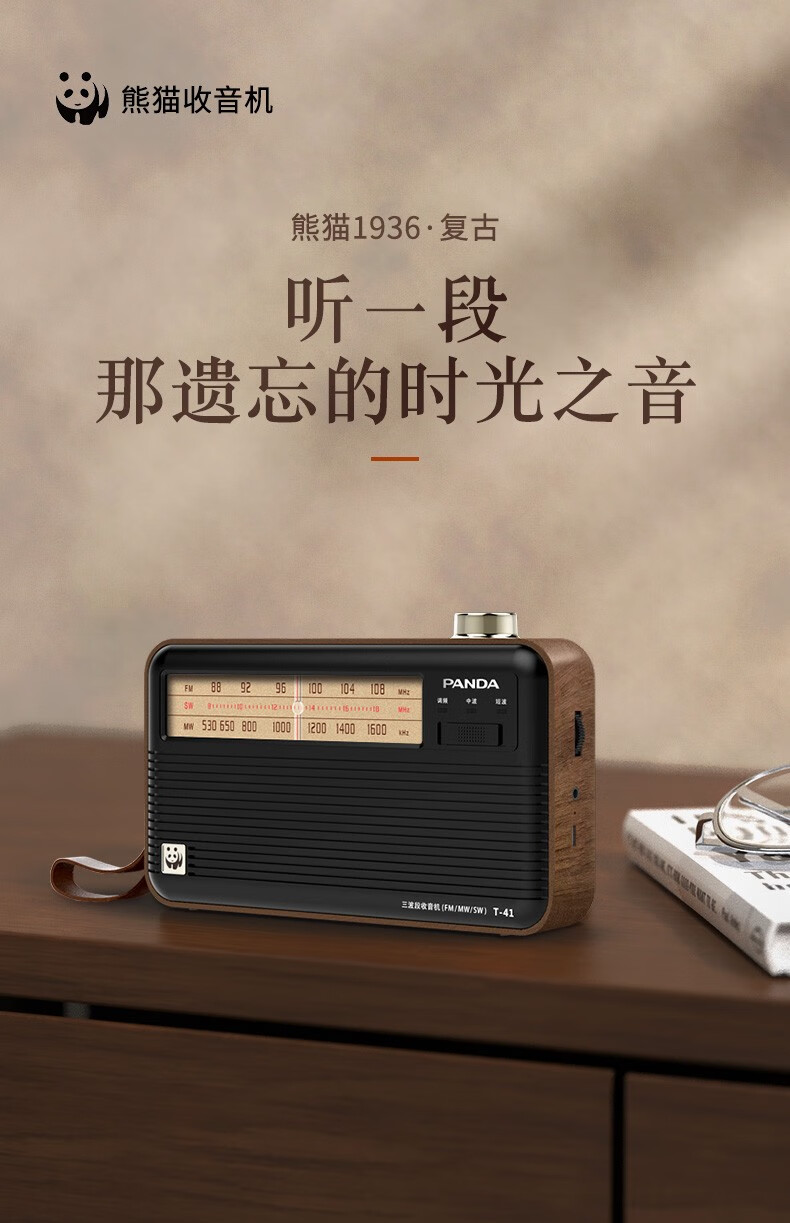 Panda (PANDA) T-41 neues Retro-Vollbandradio für ältere Menschen, altmodisches tragbares Halbleiter-UKW-Radio für ältere Menschen, wiederaufladbarer Batterieplayer für ältere Menschen, Standardkonfiguration, leichter Luxus-Retro/wiederaufladbar
