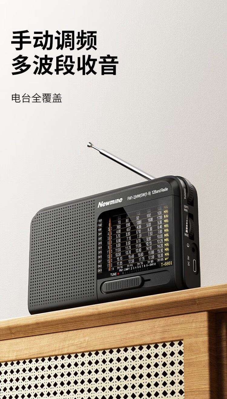 Newmine T-6801 radio multi-band semiconductor opera player for the elderly rechargeable mini portable with headphone jack