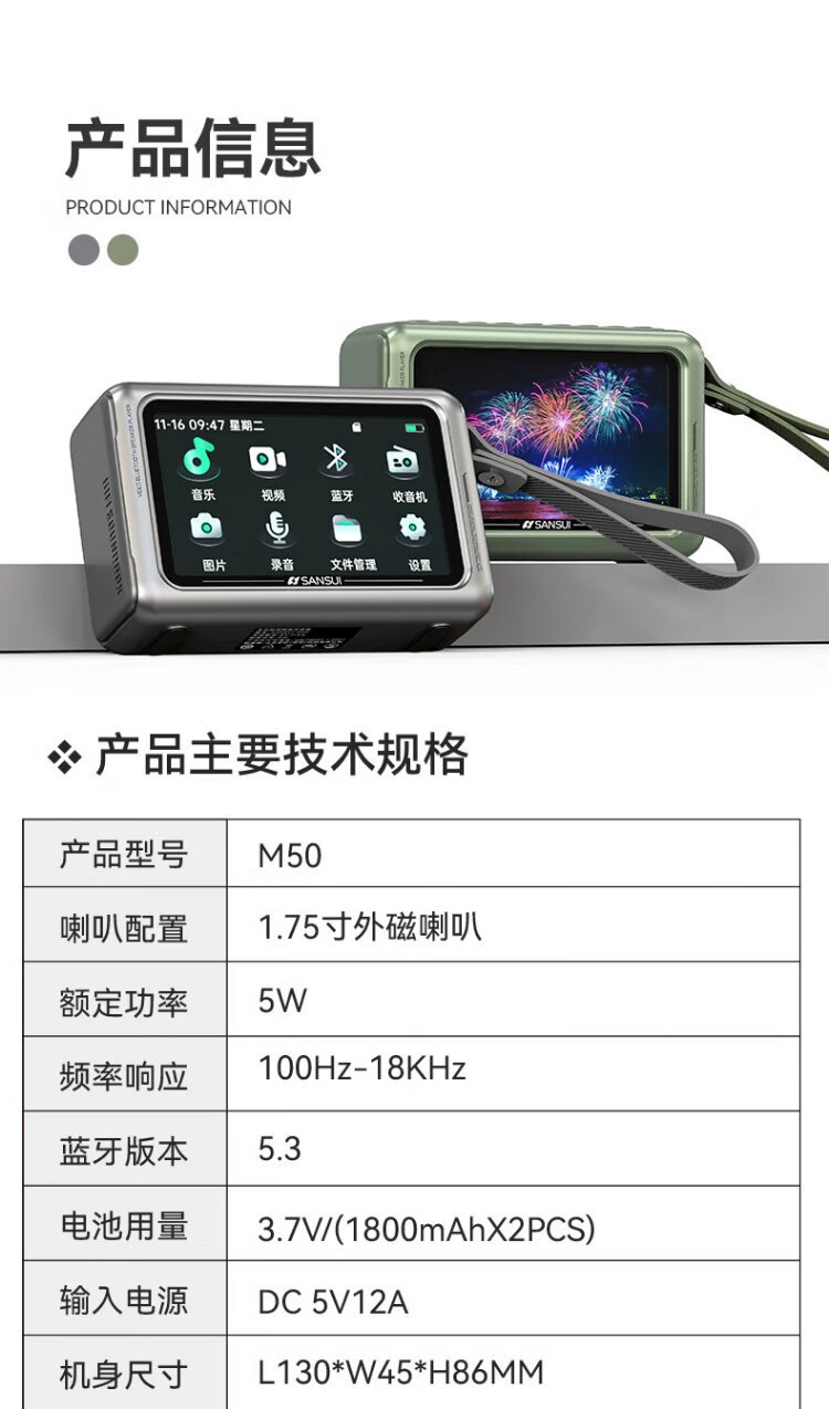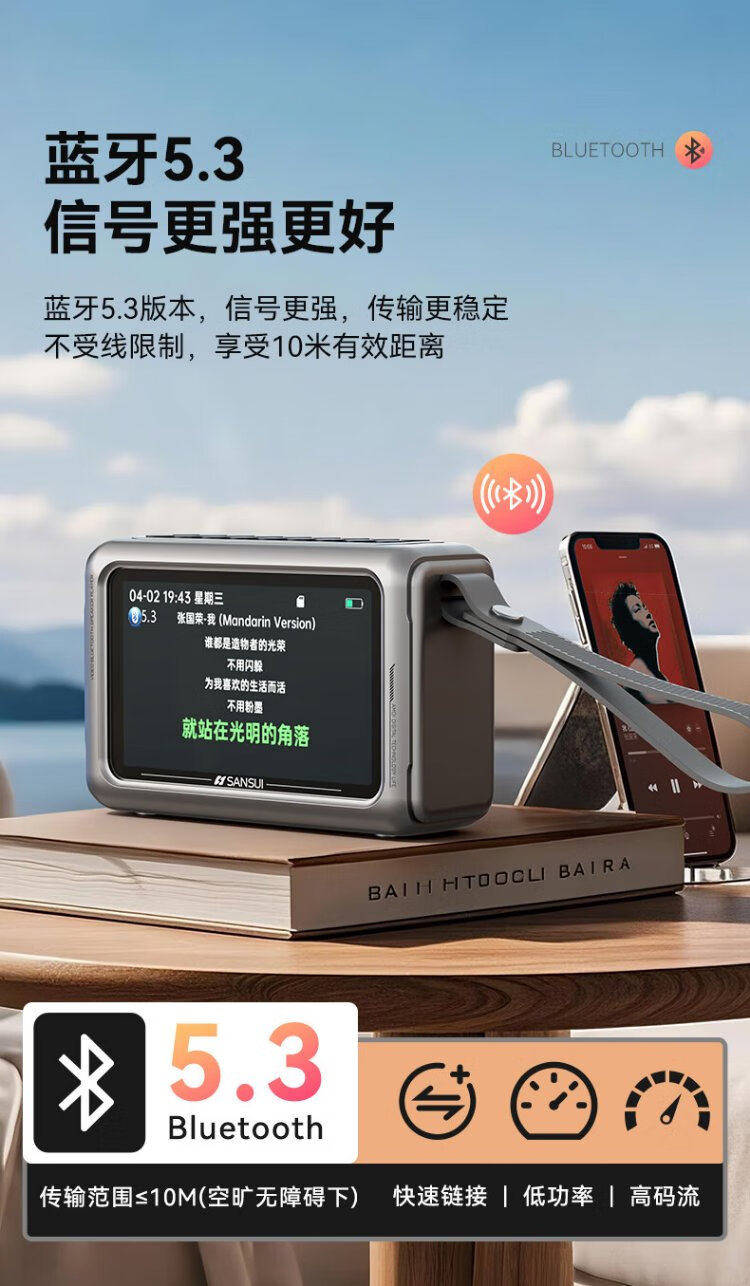 SANSUI M50 radio for the elderly, Walkman, Bluetooth speaker, opera player, portable mini multi-function player card, 2025 new special radio and tape recorder for the elderly, gray
