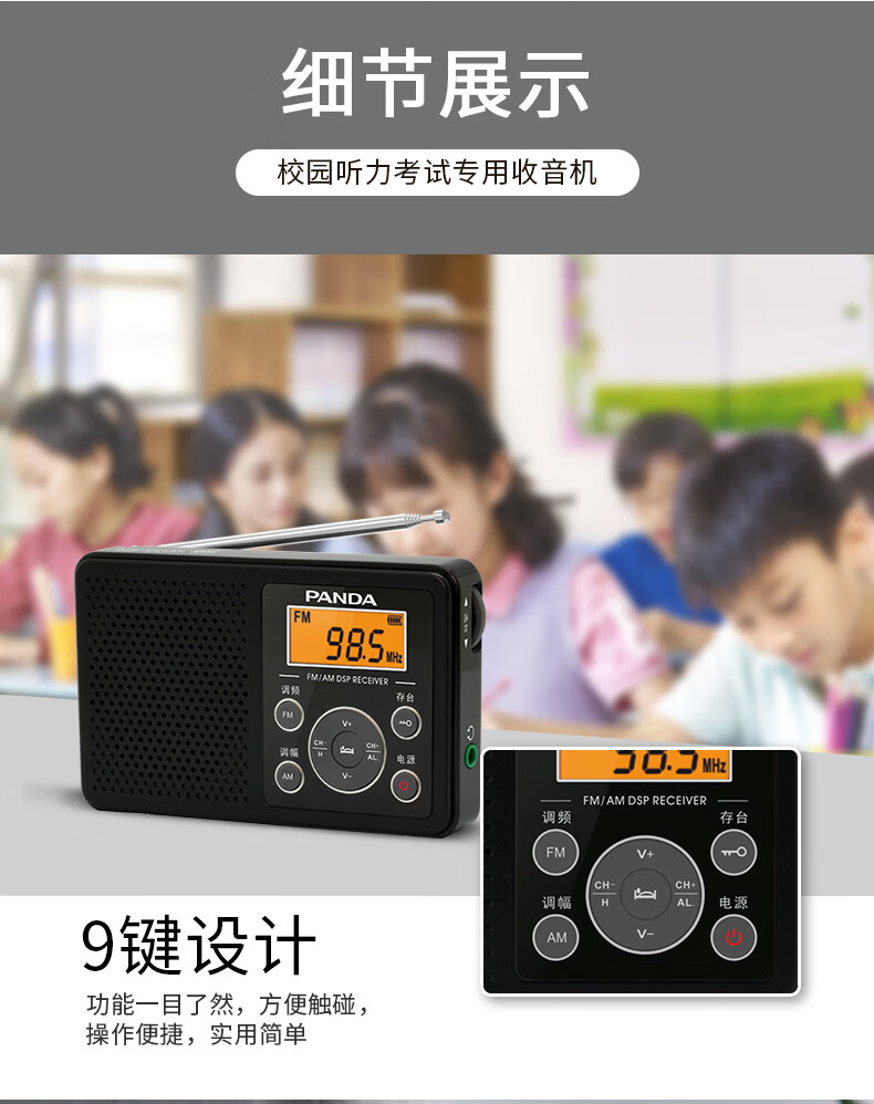 Panda (PANDA) 6105 Level 4 and 6 Radio Shanghai College Entrance Examination English Listening Radio Test Special for Level 4 and Level 6 Students College Entrance FM Campus 6105 Black Standard