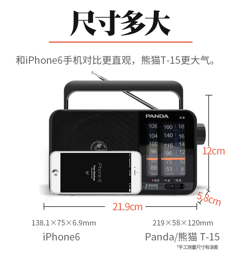 熊猫(PANDA)T15收音机全波段老人专用老年人便携式调频fm纯广播半导体老年台式插电干电池应急老式复古播放器 标配【全波段/大音量/指针式】