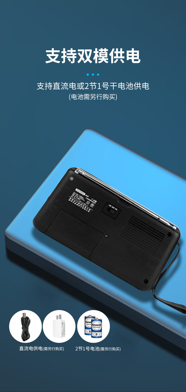 熊猫(PANDA)T-03老人收音机老年人专用老式应急便携式简单款全波段fm调频广播半导体老年新款台式陪伴机随身听 黑色+2节1号电池
