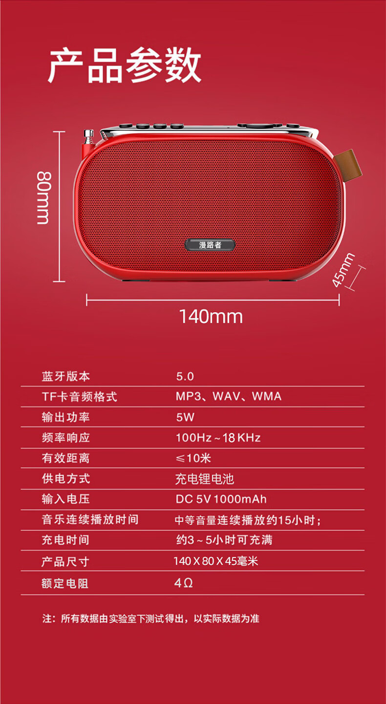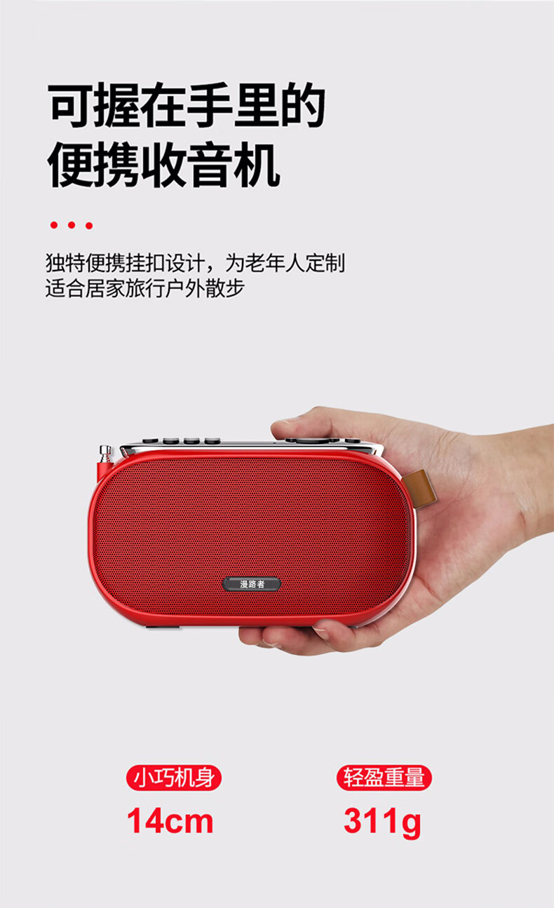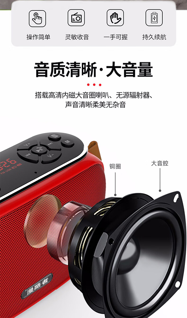 Wanderer Radio for the Elderly 2025 New High-end Portable Multi-Function Recording Player Small Walkman Singing Machine for the Elderly Singing Music Machine Red Standard No Card No Content