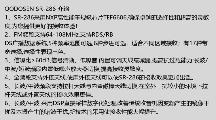 Keduosheng SR-286 radio pleine bande portable haute performance puce de qualité voiture TEF6686 haute sensibilité professionnelle haut de gamme portable petite nouvelle radio SR-286 modèle standard radio