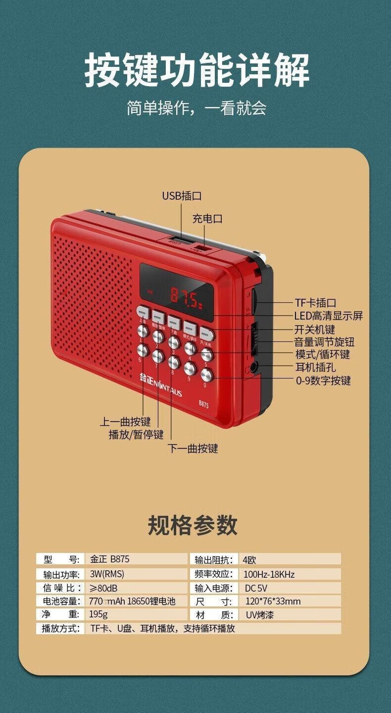 25-year-old new radio, multi-functional radio card for the elderly, plug-in USB flash drive, Bluetooth playback machine, portable Bluetooth speaker, radio, good sound quality - long-lasting battery life