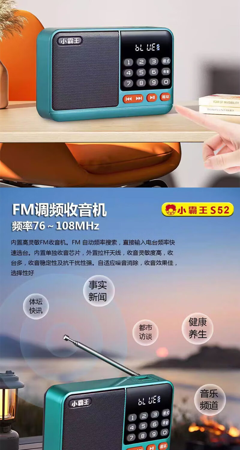Radio S52 Bluetooth audio player plug-in card small audio radio can be inserted into the card into a USB flash drive into headphones for the elderly radio Bluetooth radio red standard (host + data cable + battery + lanyard)