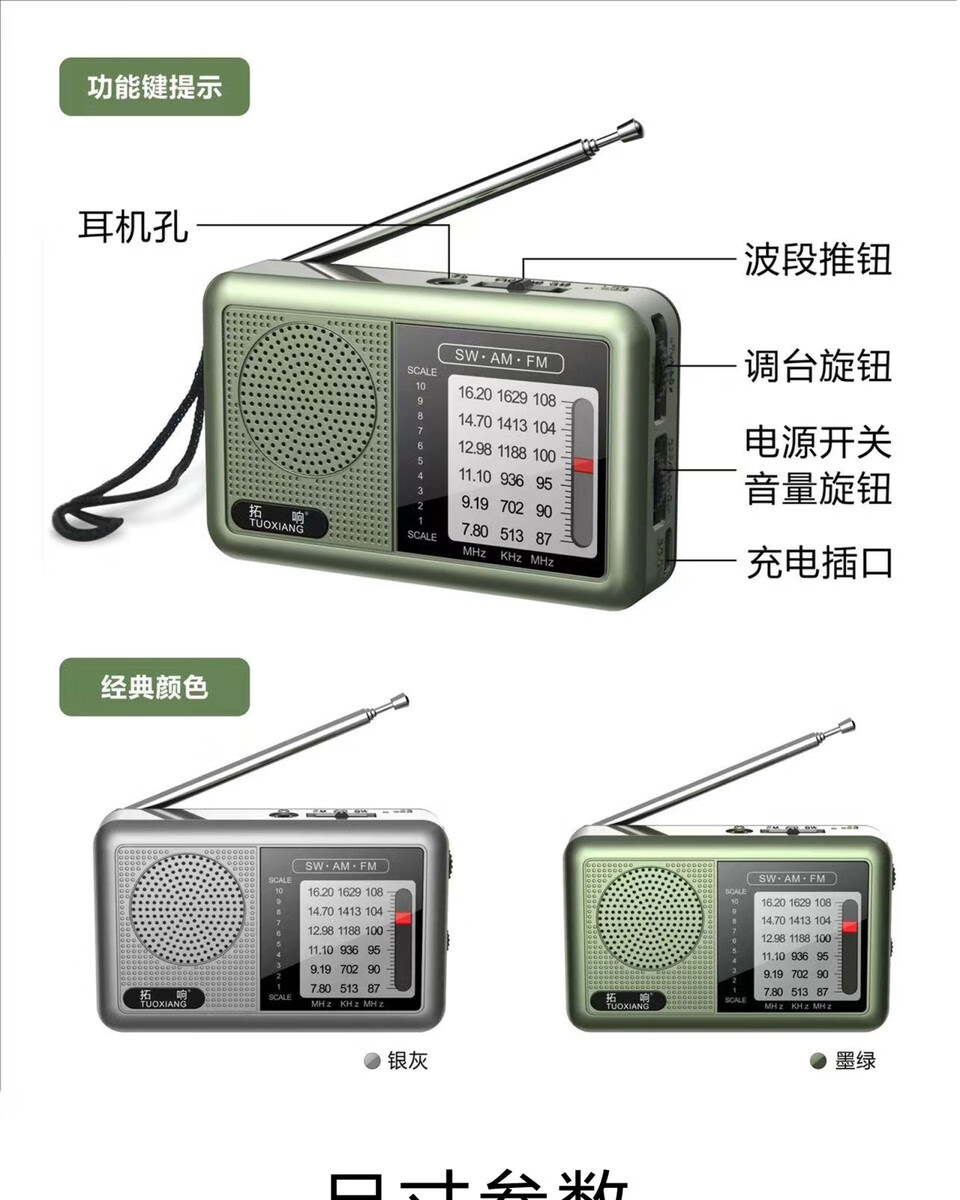 Zhong Zhang Gui radio for the elderly, full-band high-end semiconductor portable walkman, short FM for the elderly, dark green official standard (with charging cable), no battery, recommended to take