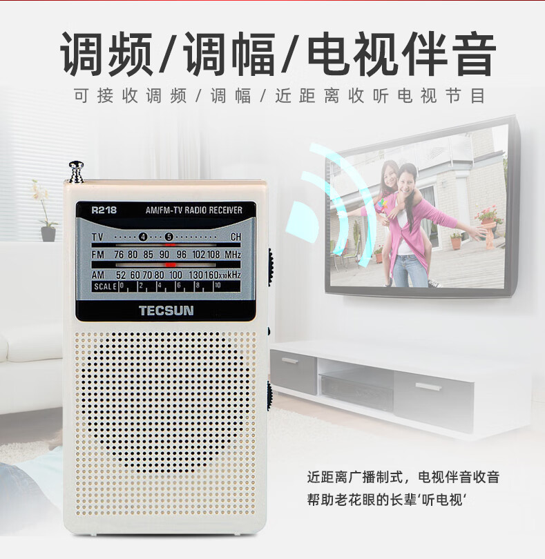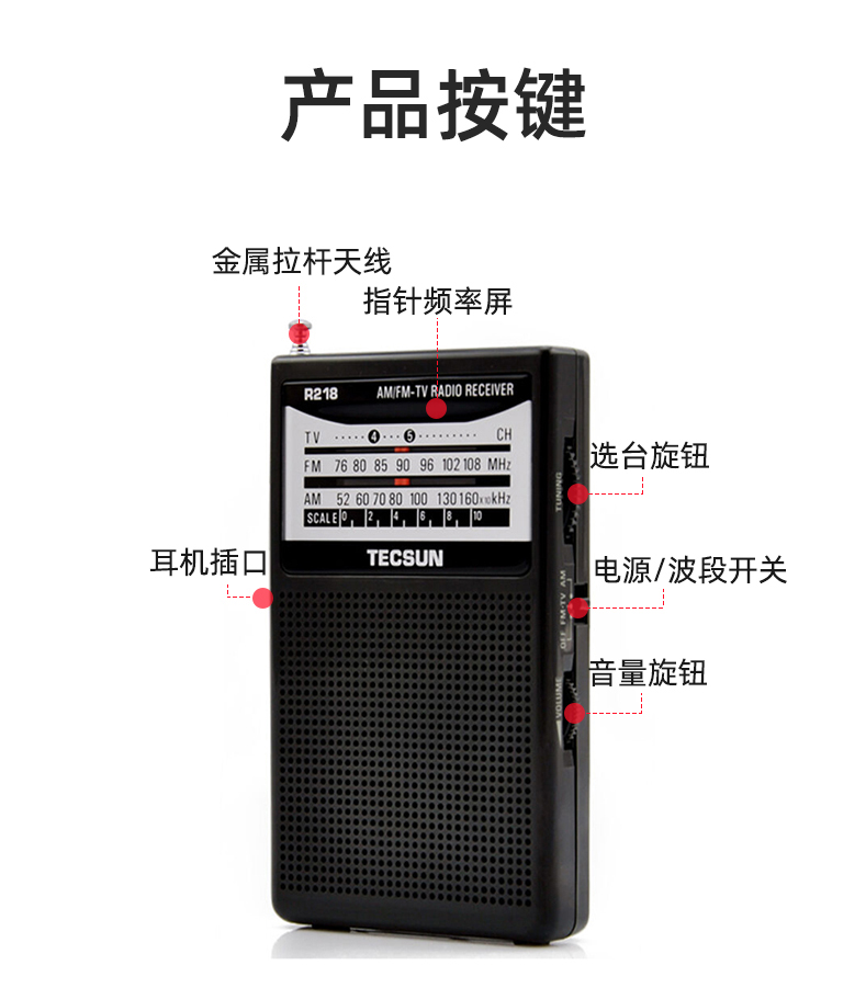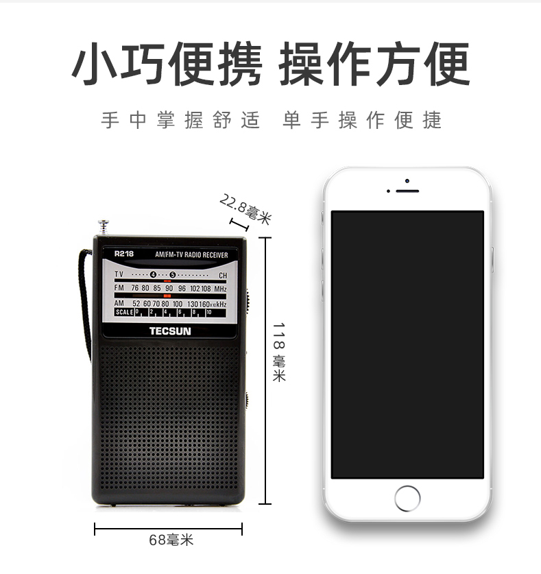 Tecsun R-218 radio portable elderly TV sound mini campus broadcast semiconductor pocket mini radio black