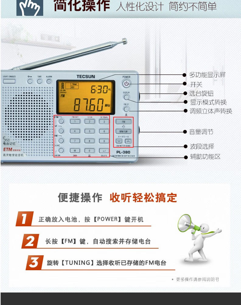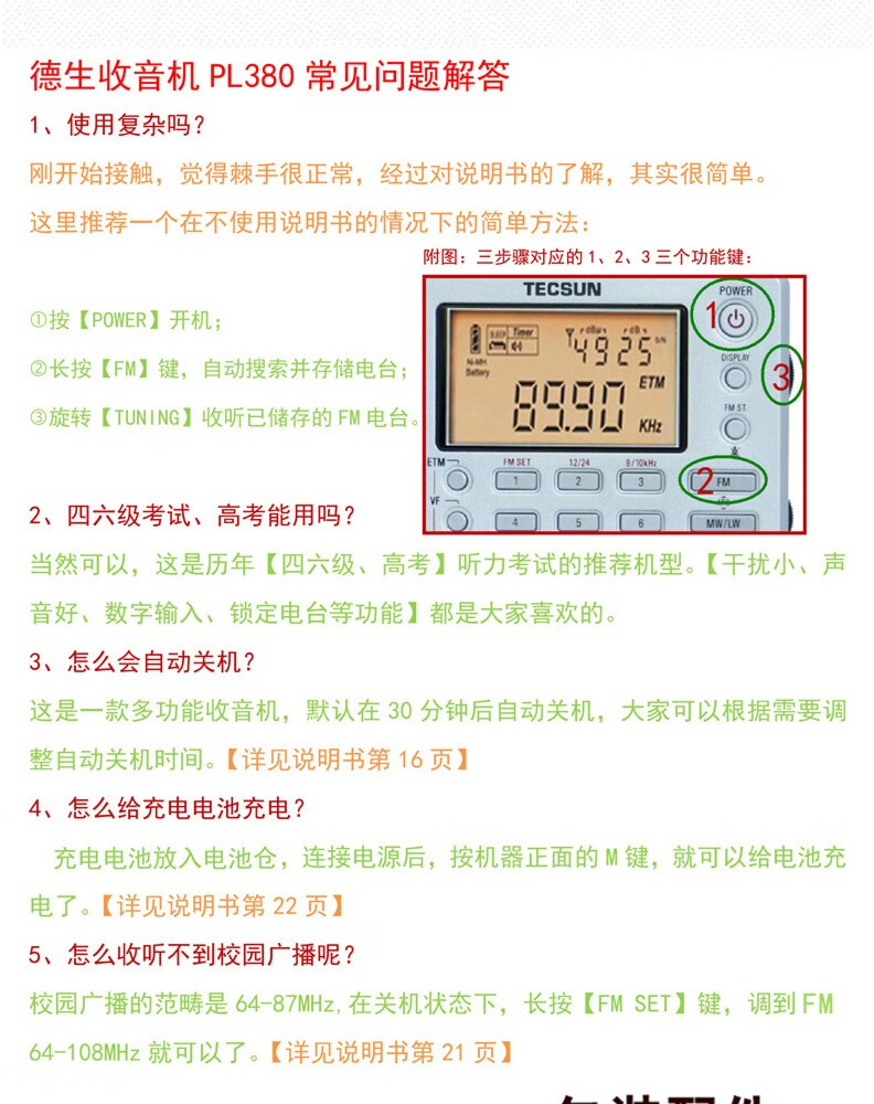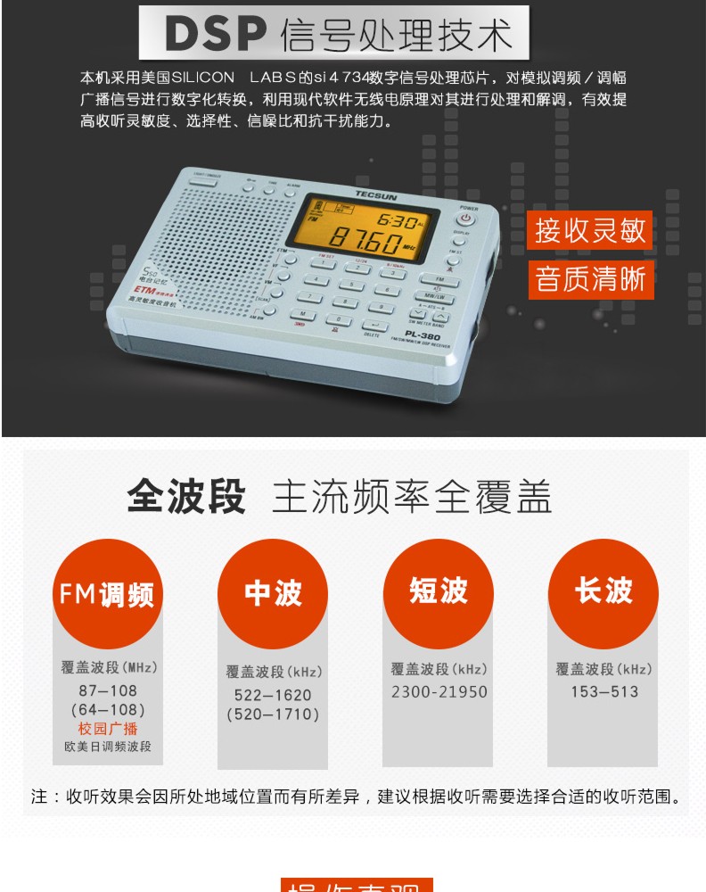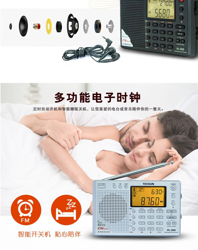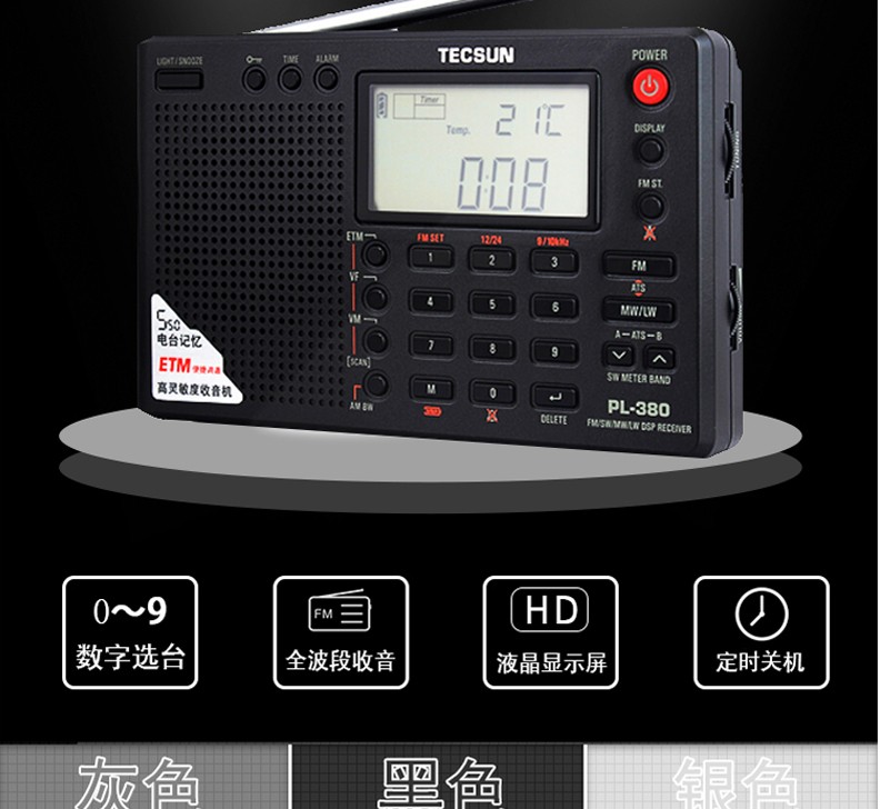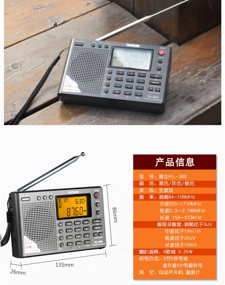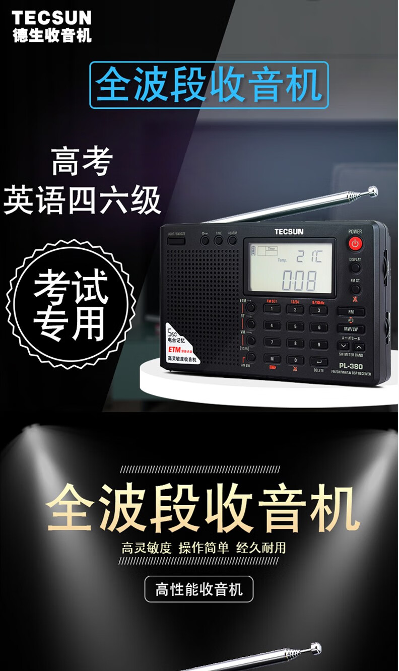 Tecsun PL-380 Vollbandradio für ältere Menschen, digital abgestimmtes Stereo-College-Aufnahmetest, Englischniveau 4 und 6, Campus-Broadcast-Halbleiterstudenten, grau