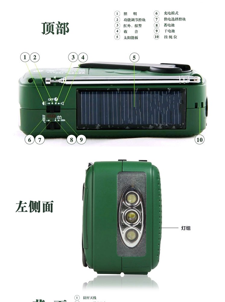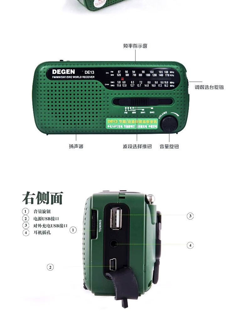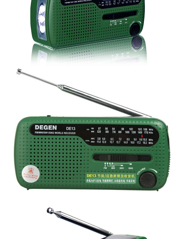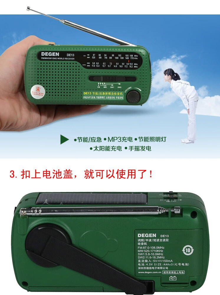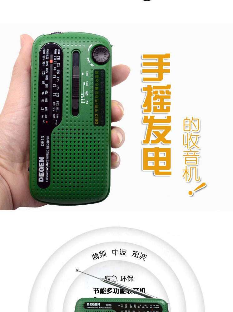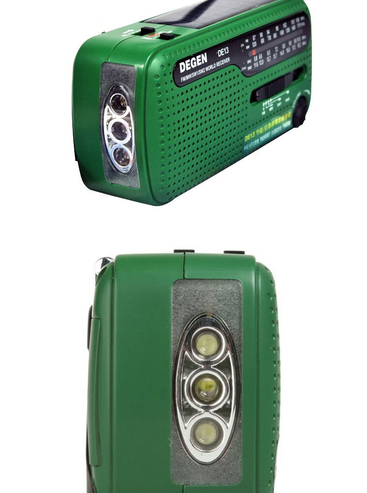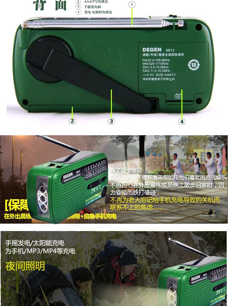 德劲(DEGEN) DE13手摇发电收音机太阳能充电地震应急照明防灾救灾老人便携式全波段广播半导体战备储备物资 DE13标配