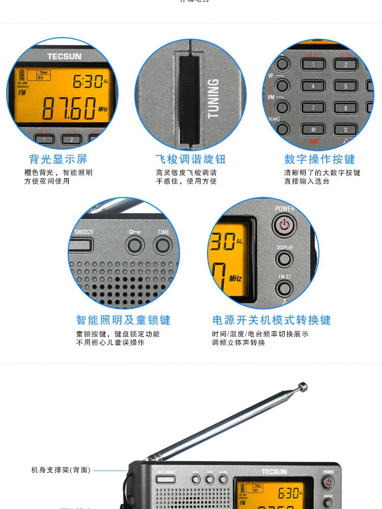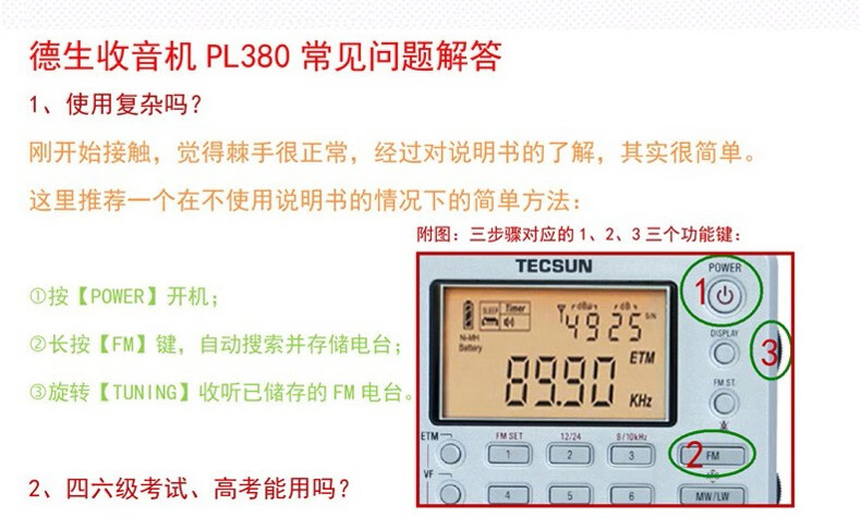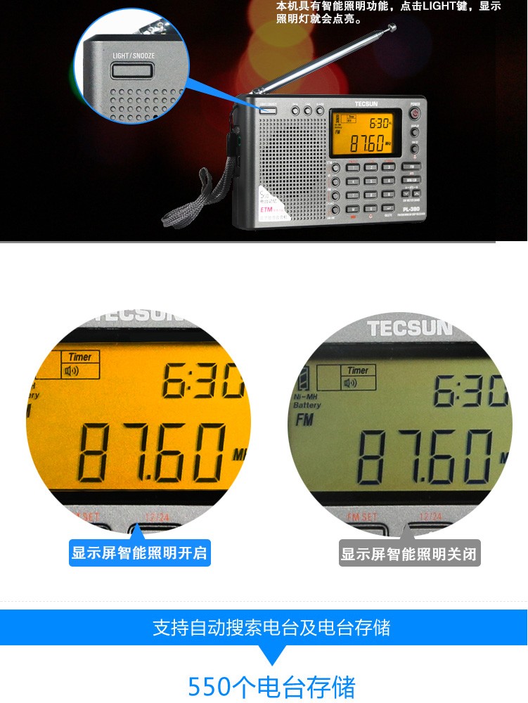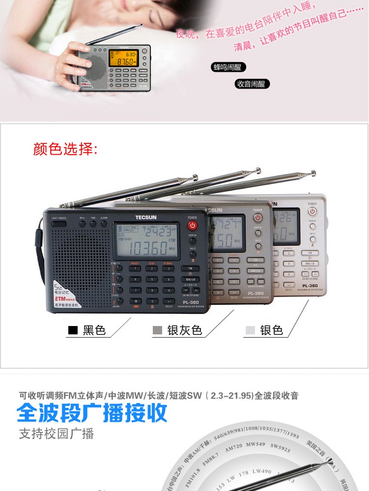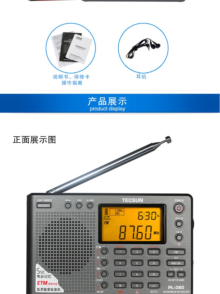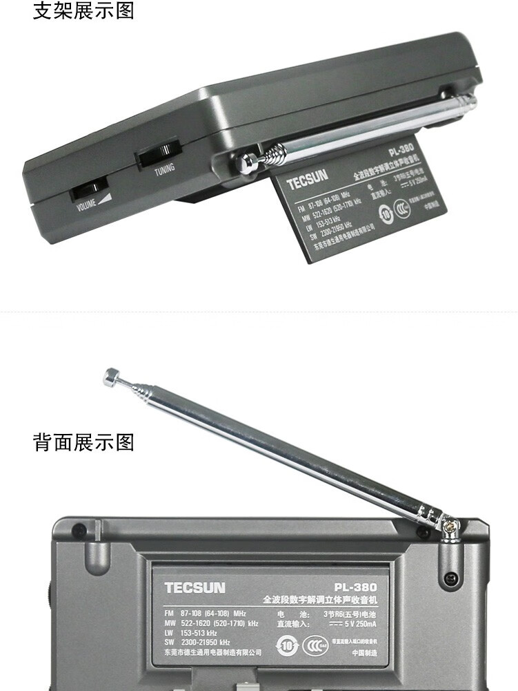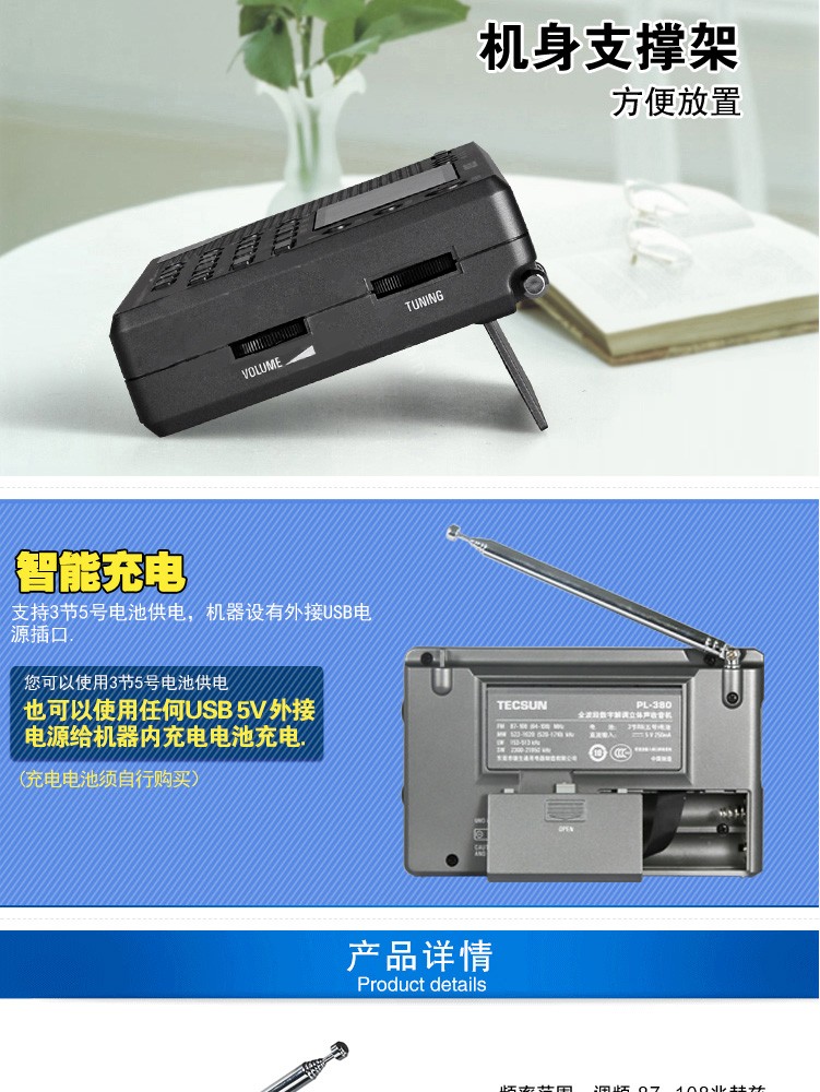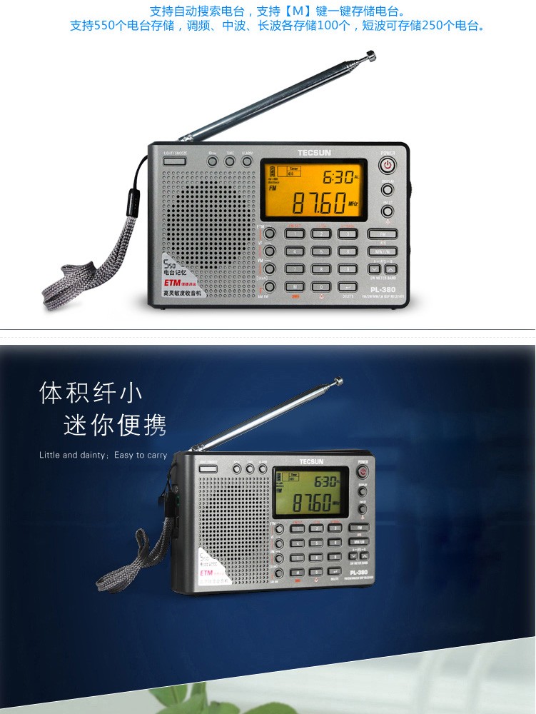 Tecsun pl380 Shanghai College Entrance Examination English Listening Radio for College Students CET-4 and CET-4 Examination Special Full-band Portable Radio for the Elderly Black Standard Configuration Includes Original Headphones + Special Protective Bag + External Soft Antenna
