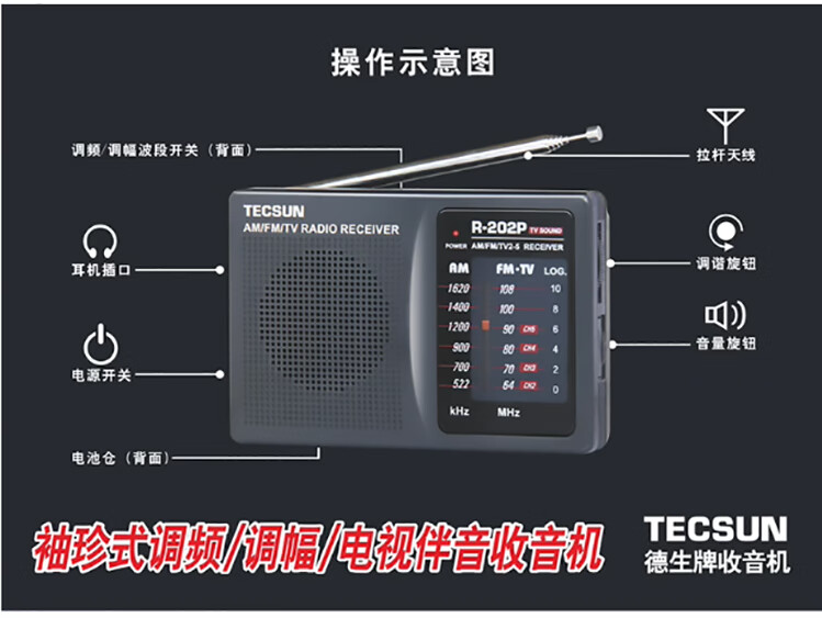 Tecsun R-202P radio portable for the elderly English band 4 and 6 college entrance examination listening test radio mini broadcast semiconductor 202P standard