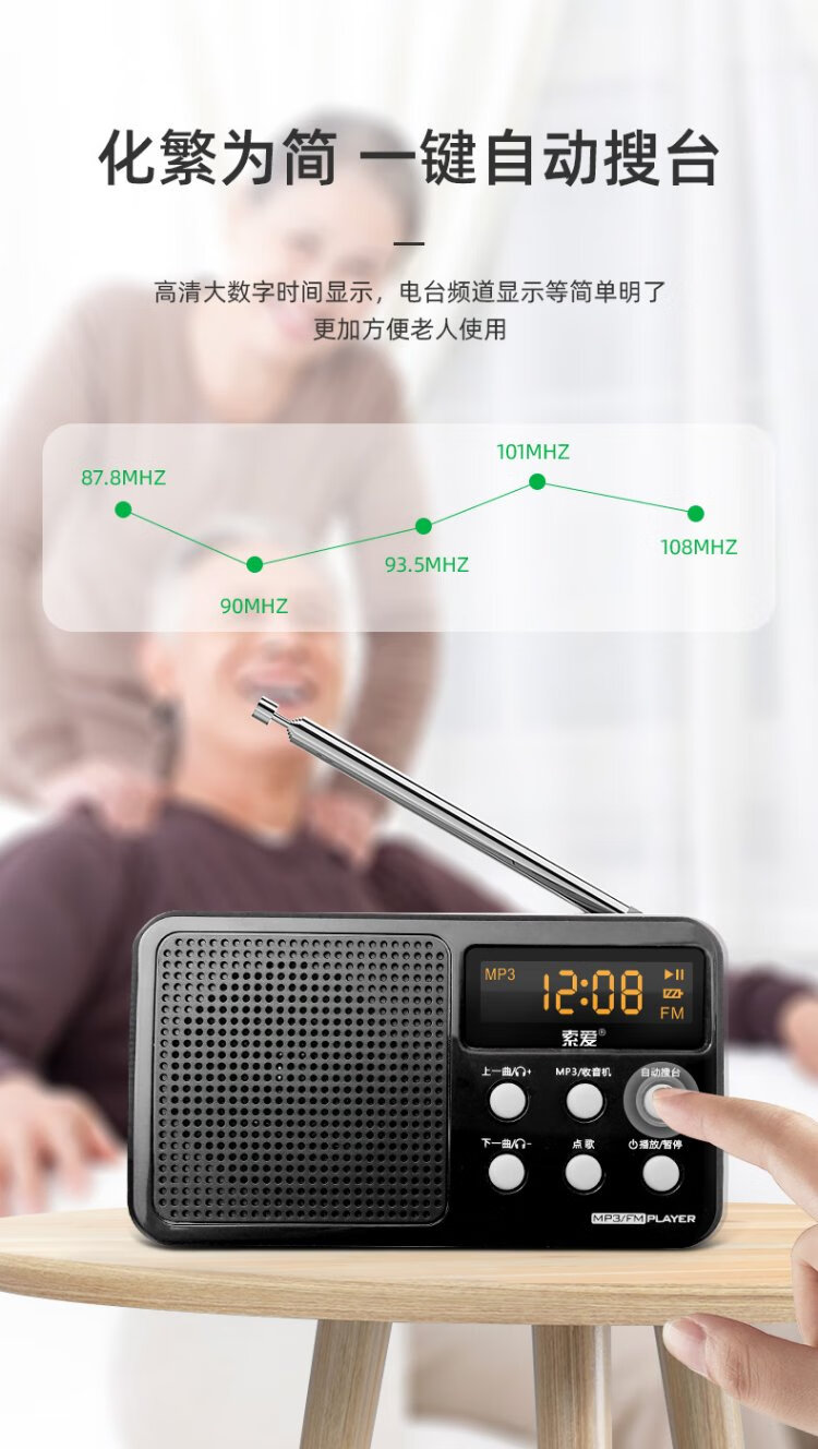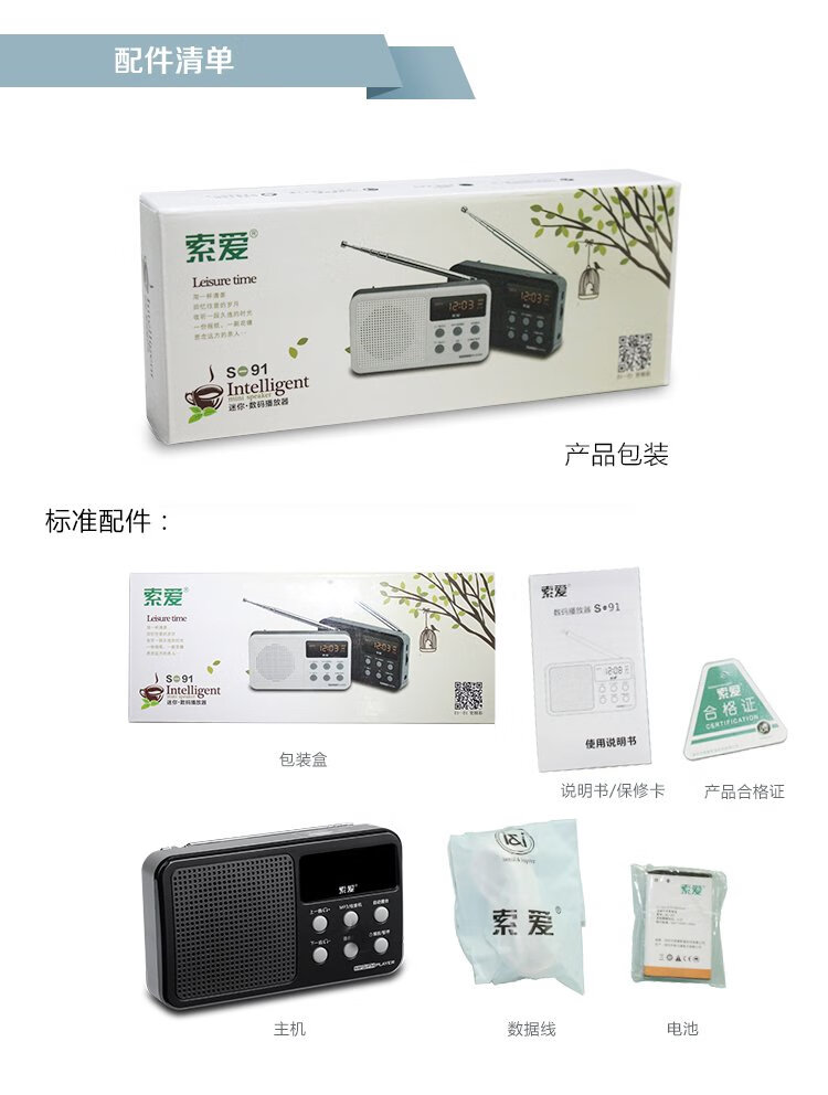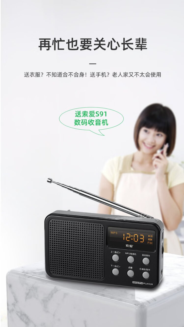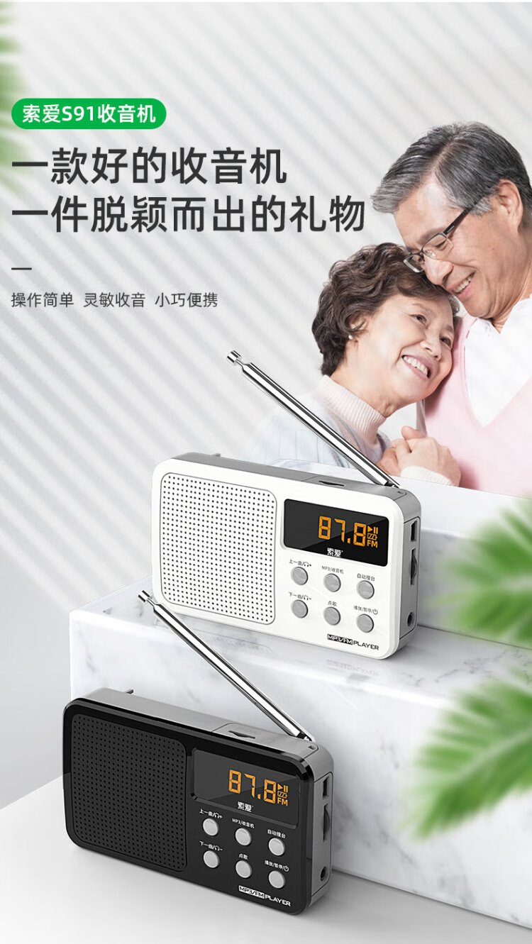 Sony Ericsson (soaiy) S91 radio for the elderly FM Walkman player portable charging plug-in card mini speaker mini English level 4 and 6 plug-in card for the elderly black