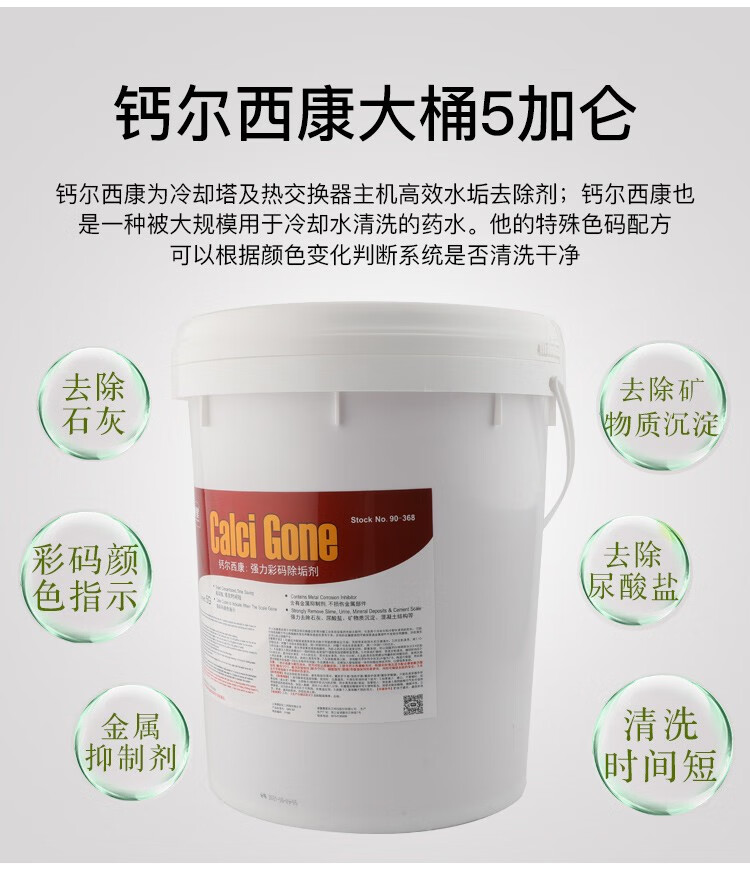 Calxikang 90-368 super powerful color code descaling agent copper pipe circulating water cooling tower boiler rust remover water treatment agent large barrel 18.9L Calxikang (18.9L large barrel)