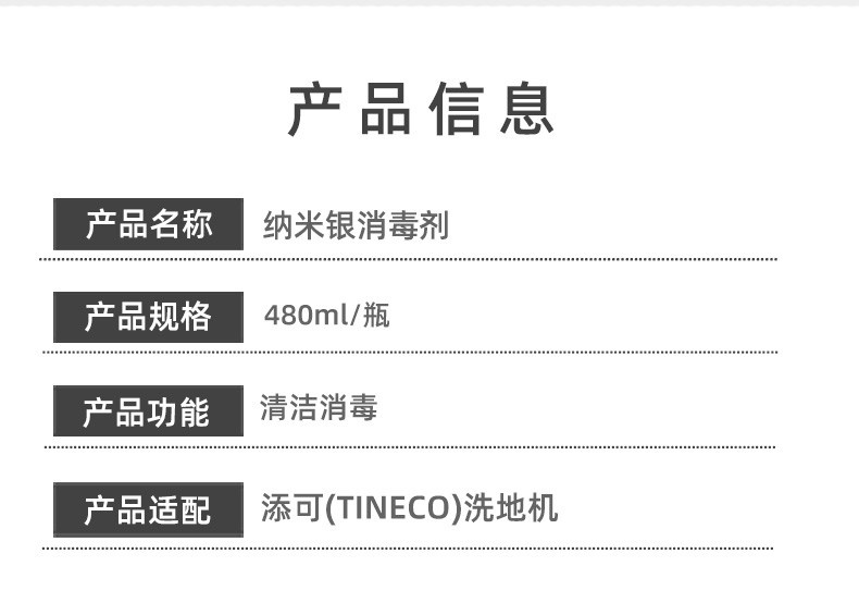 Suitable for TINECO floor washing machine accessories, quick decontamination and dust removal, time-saving and labor-saving floor cleaning liquid, cleaning liquid, nano-silver disinfectant 480ml disinfectant
