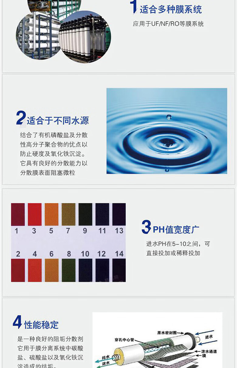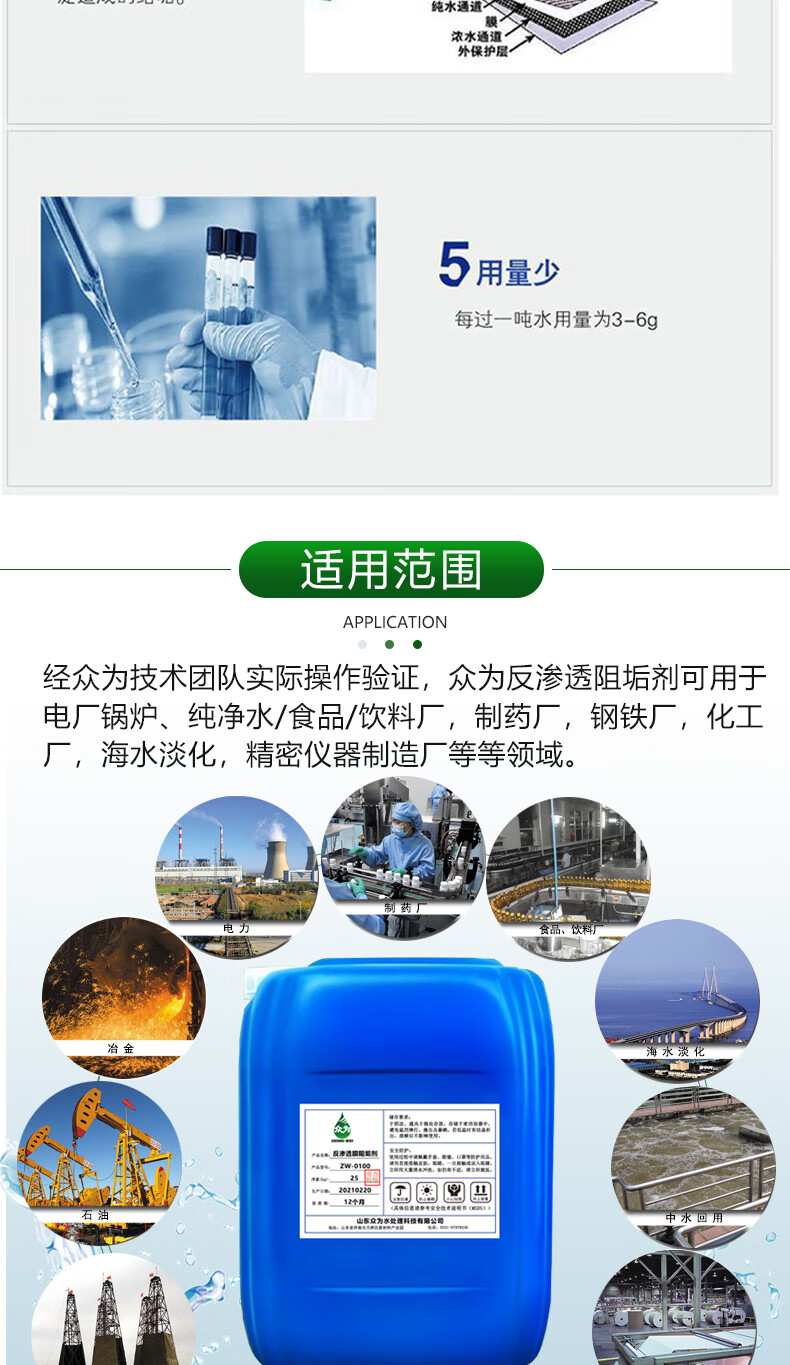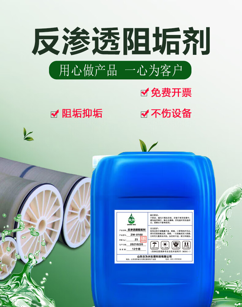 Reverse osmosis scale inhibitor ZW0100 food grade pure water RO membrane scale removal and scale inhibitor water treatment concentrated type 25KG