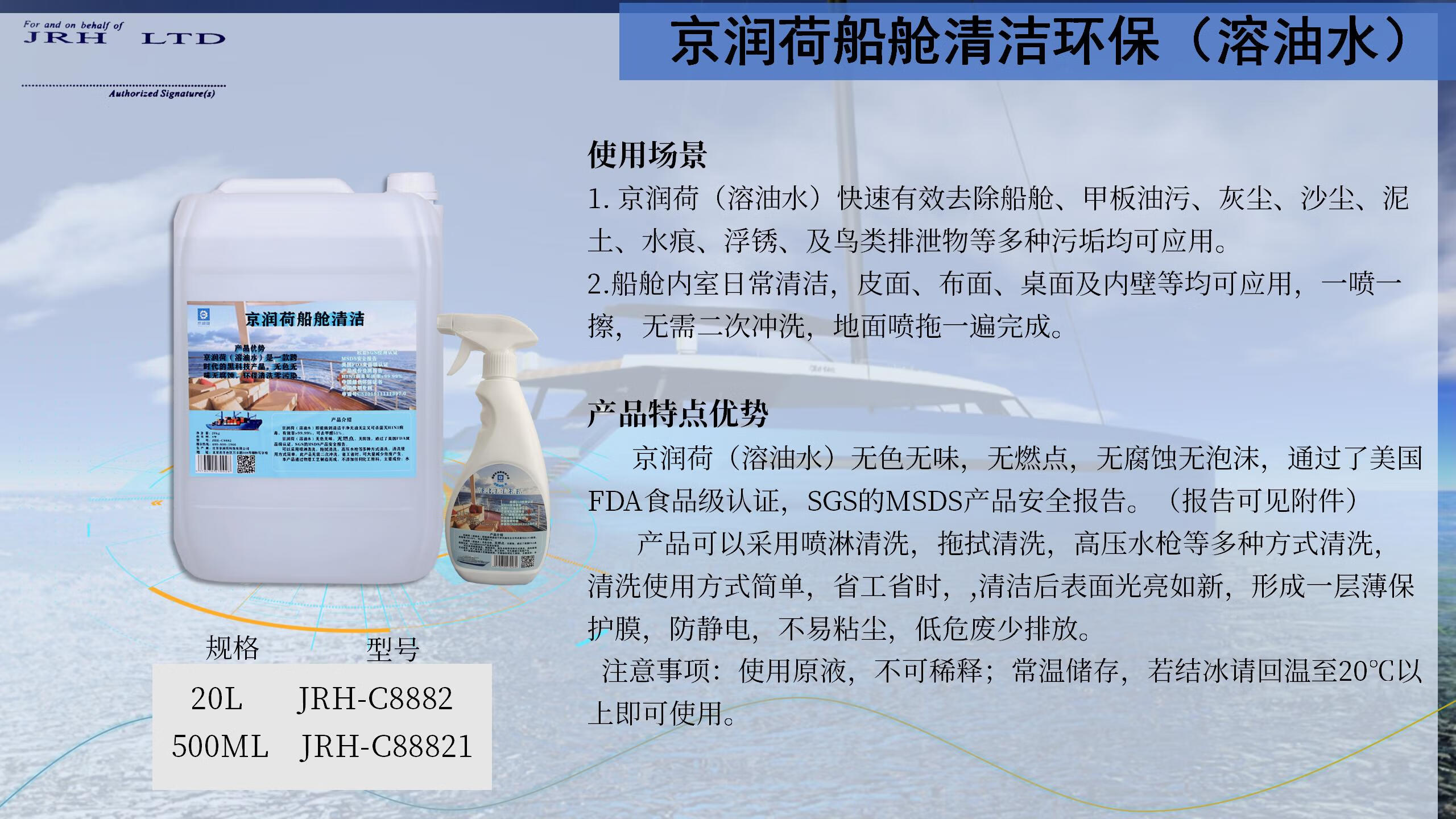 Cabin environmentally friendly cleaning agent Jingrunhe oil-water soluble warship ship cruise cab deck glass oil stain cleaning machinery maintenance cleaning VOC zero pollution to the marine environment 500ML