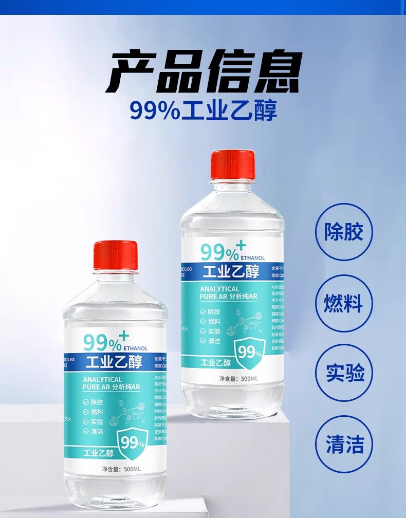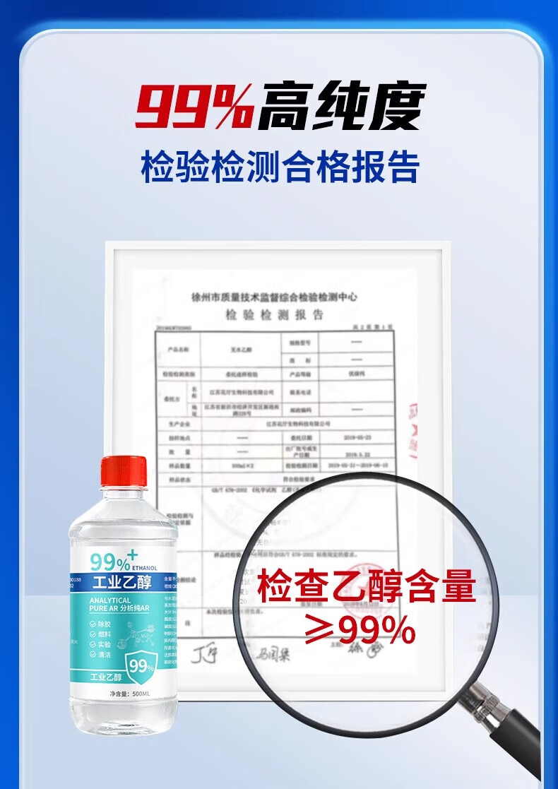 Ethanol 99 degree high concentration 500ml bottle high purity laboratory industrial precision instrument cleaning alcohol fuel 10 bottles invoice