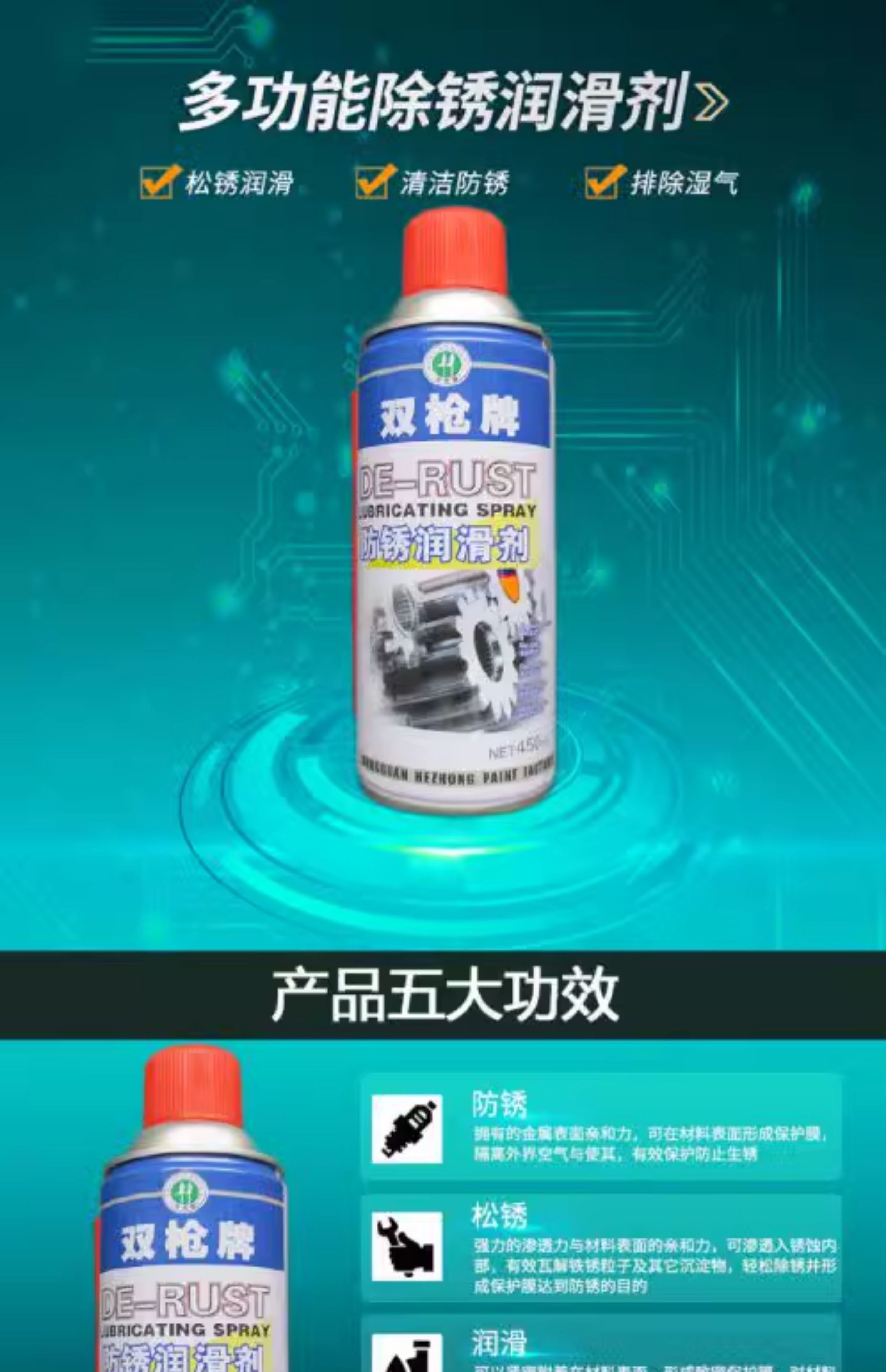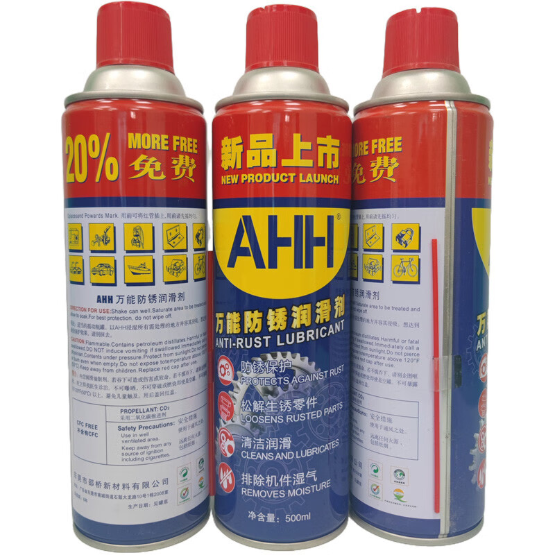 Powerful rust remover, anti-rust lubricant, quick cleaning car metal bolt loosening agent, double gun lubricant spray, AHH brand 500ml bottle