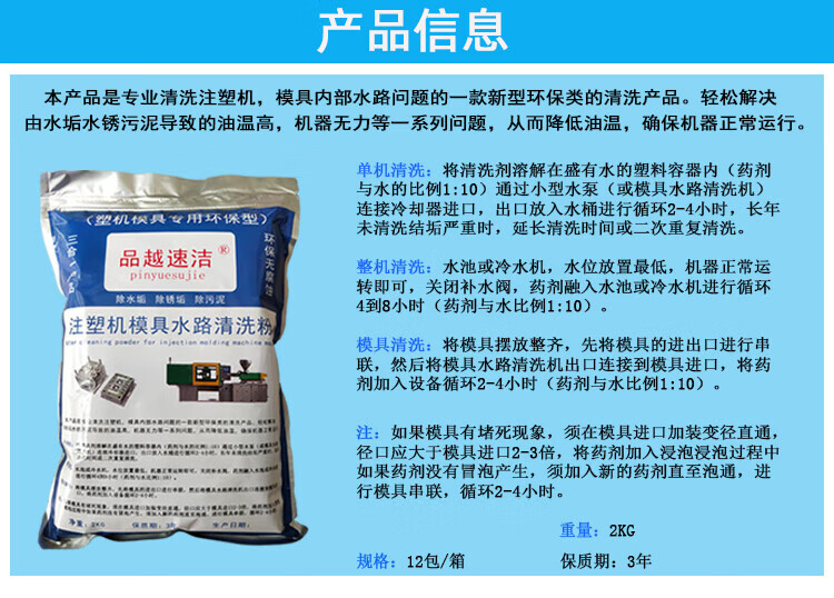 Injection molding machine mold waterway cleaning agent descaling waterway special rust removal oil cooling
