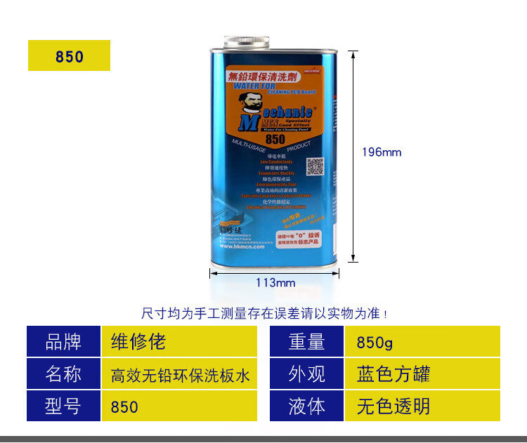 Washing water repairman 850 small bottle cleaning PCB circuit board circuit board motherboard mobile phone repair 5 liter cleaning agent XB3506 lead-free environmentally friendly cleaning agent 5KG