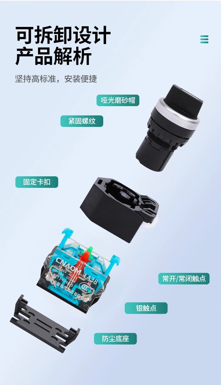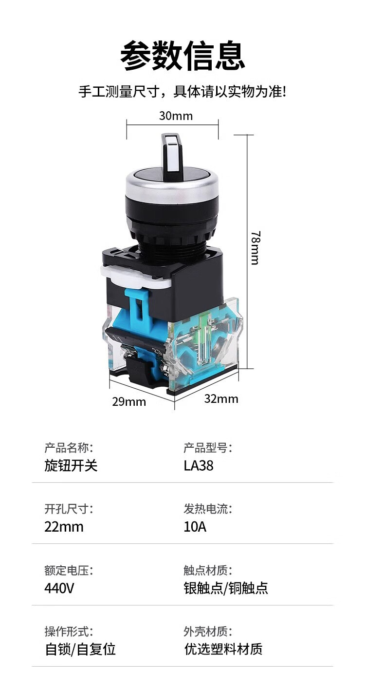 Knob switch LA38-11X2 20X3 transfer switch button 2nd gear 3rd gear 22MM second gear third gear selection button self-locking two gears