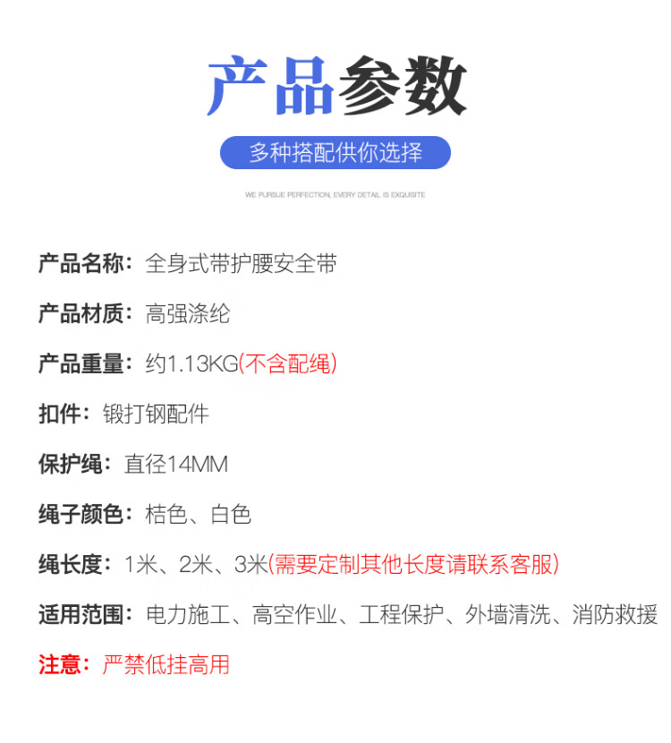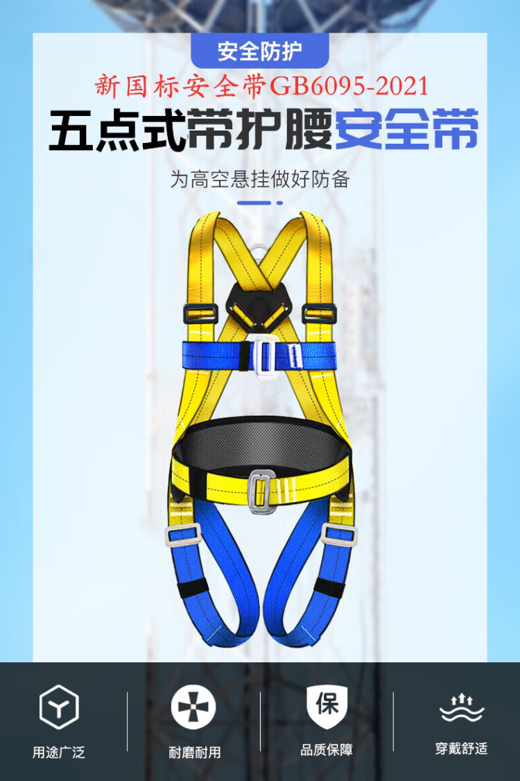 Jingte Jingcang Suda five-point safety belt webbing widened and thickened waist protection 2-meter single large hook safety rope wear-resistant polyester electrician safety belt for high-altitude operations