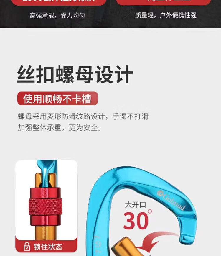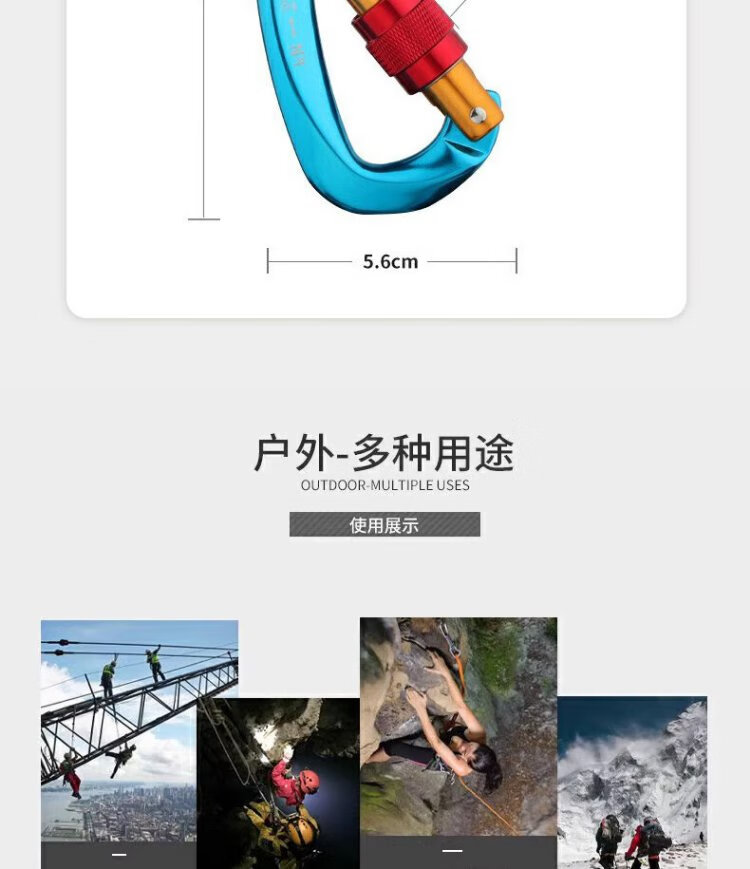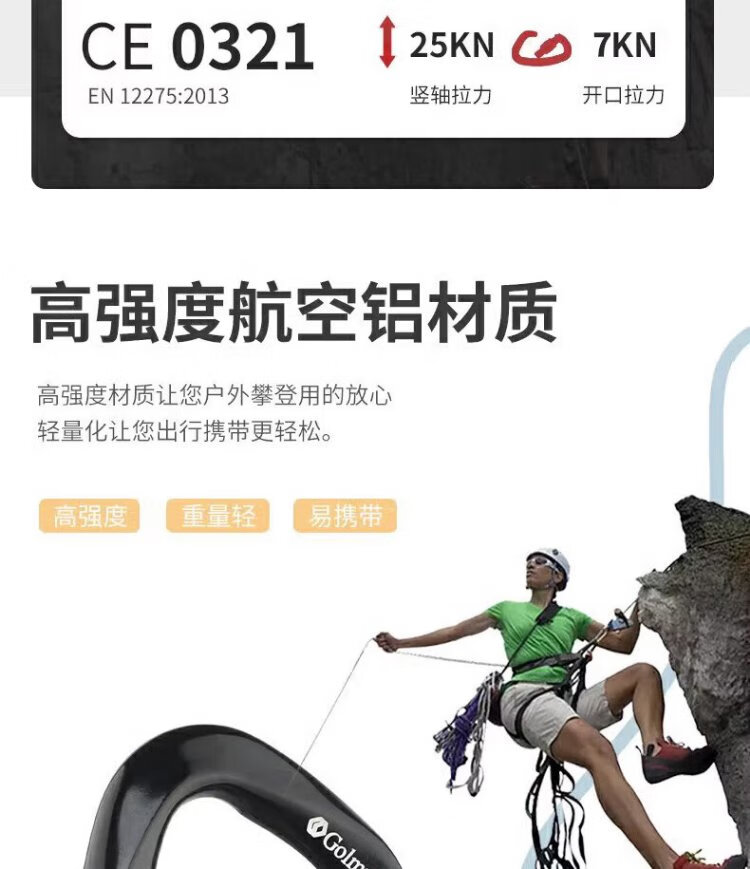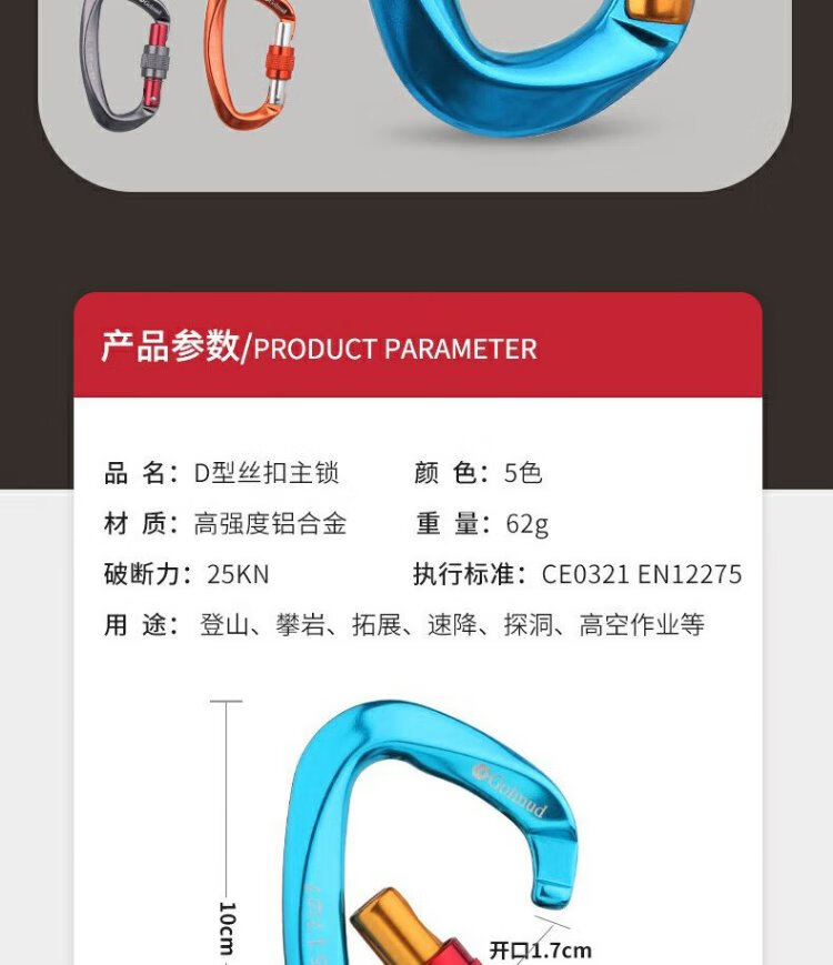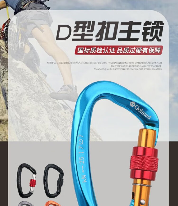 Gorm climbing equipment main lock aluminum alloy lock safety hook Meilong lock load-bearing carabiner D-shaped lock GM976 blue