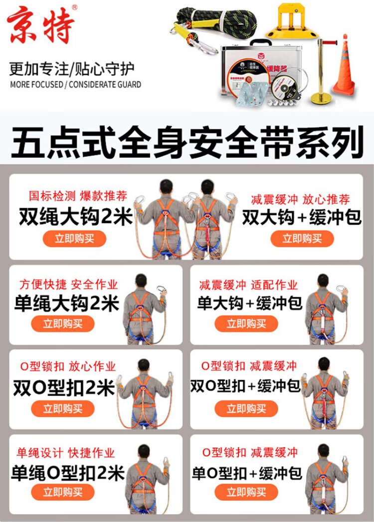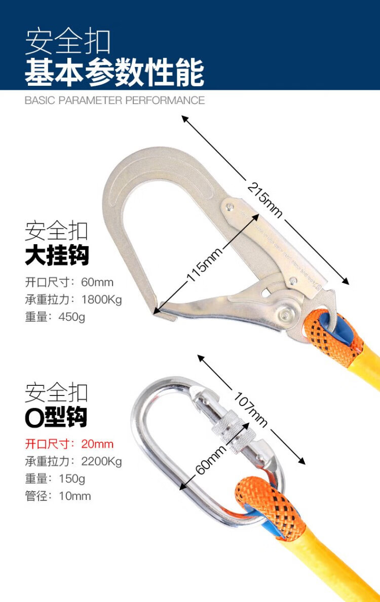 Jingte Jingcang Suda five-point safety belt 2 meters (single rope O-buckle) safety rope anti-fall safety buckle aerial work safety belt