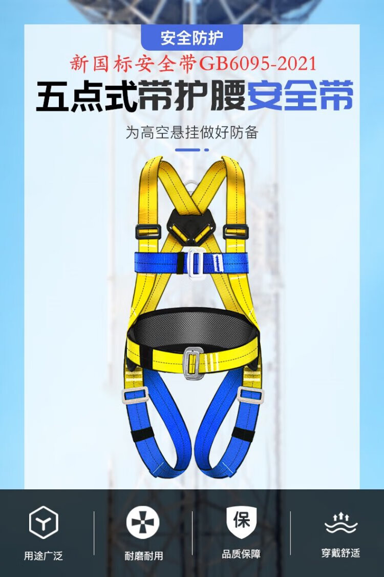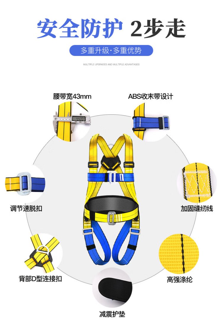Jingte Jingcang Suda five-point safety belt, widened and thickened webbing, 2-meter double hook, safety rope, wear-resistant polyester electrician safety belt, full body safety belt