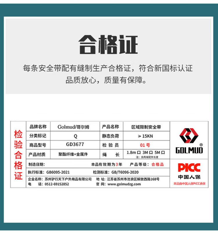 Gorm safety belt national standard single waist belt safety rope work safety belt GD3677 single small hook 1.8 meters