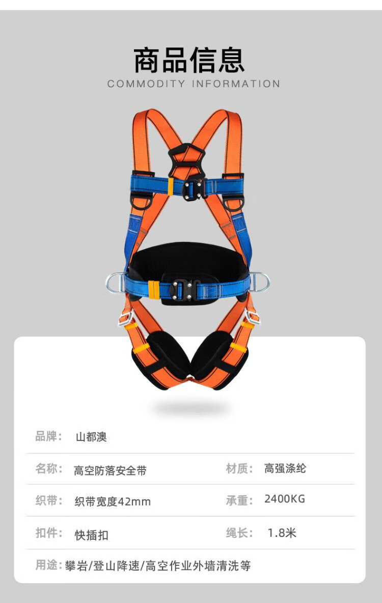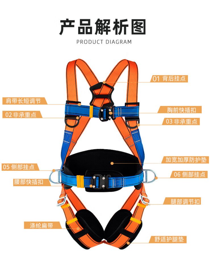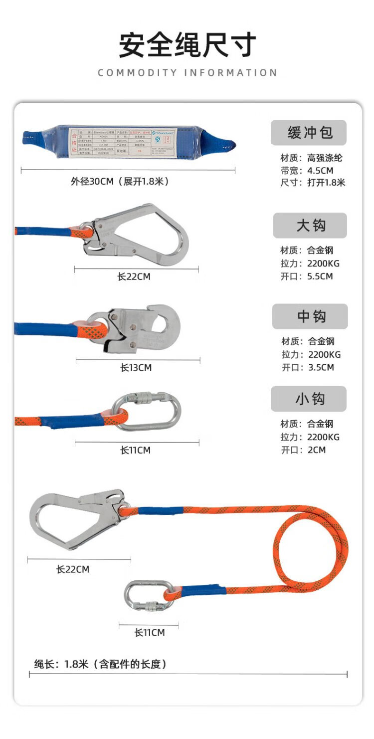 Sanduao safety belt double hook buffer bag 1.8 meters high-altitude five-point safety belt national standard AD8636