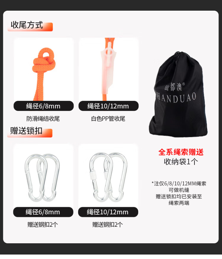 Sanduao safety rope polypropylene high altitude anti-fall rope speed drop rope rescue rope clothesline 6mm (orange) 3 meters