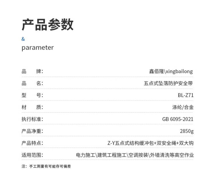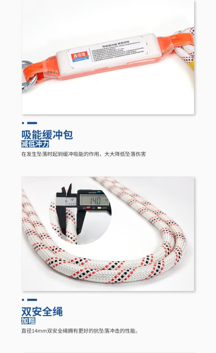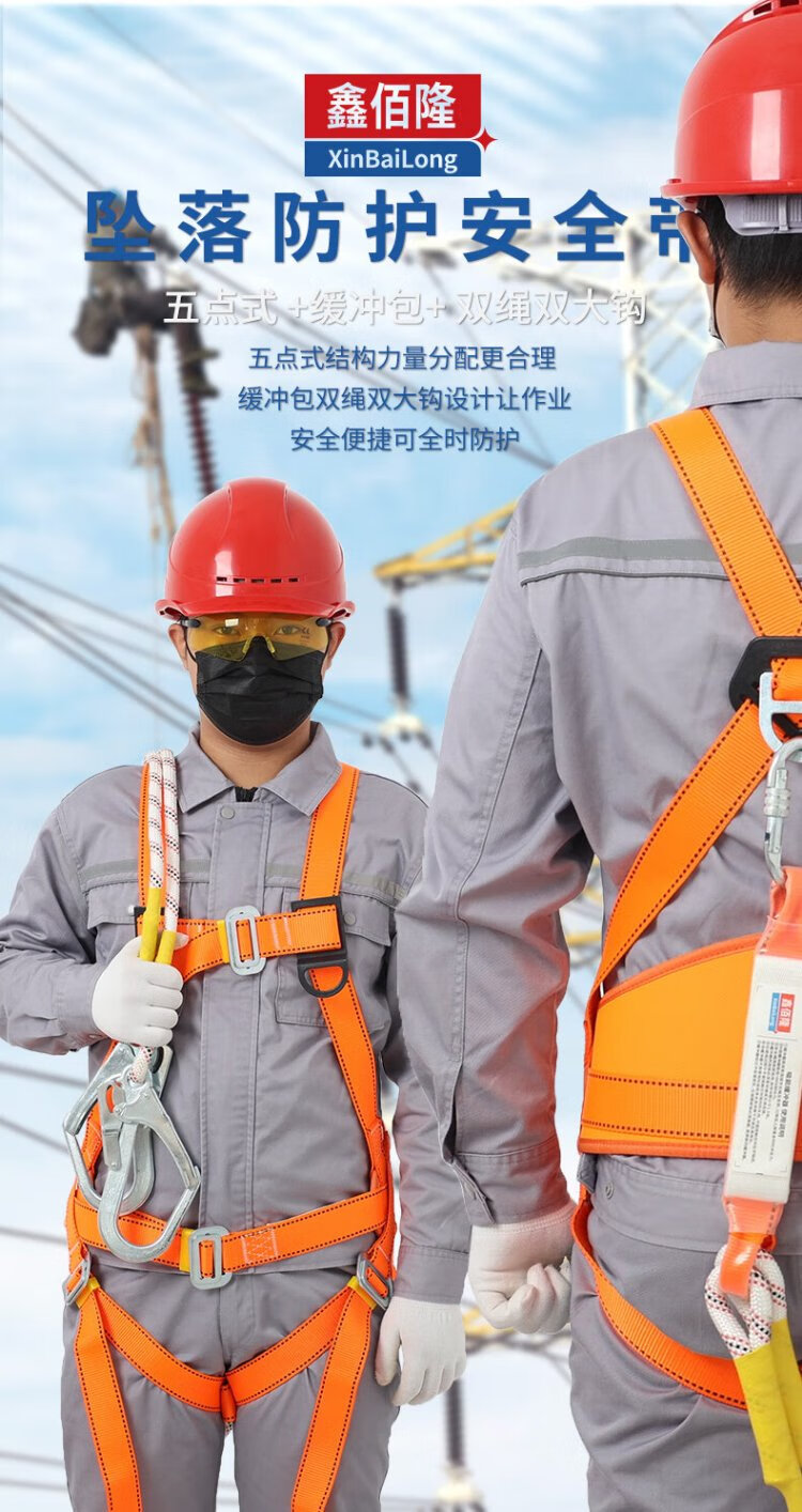 Xinbailong five-point anti-fall safety belt for high-altitude operations, buffer bag, 2-meter rope, double hooks BL-Z71